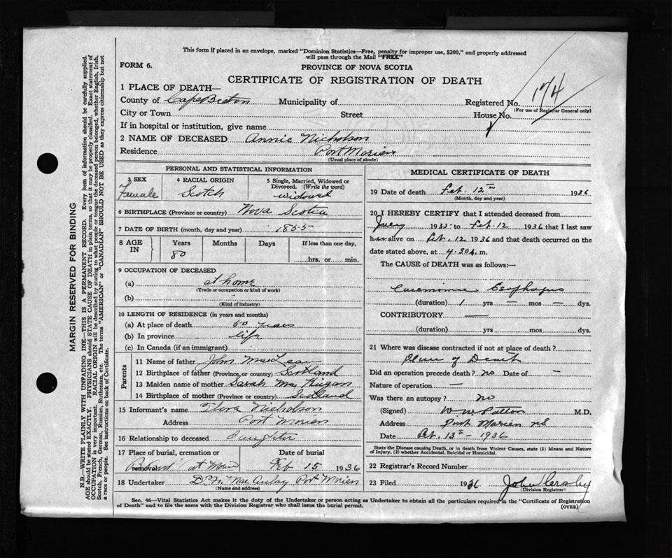 Nova Scotia Archives — https://archives.novascotia.ca/vital-statistics/death/?ID=279300