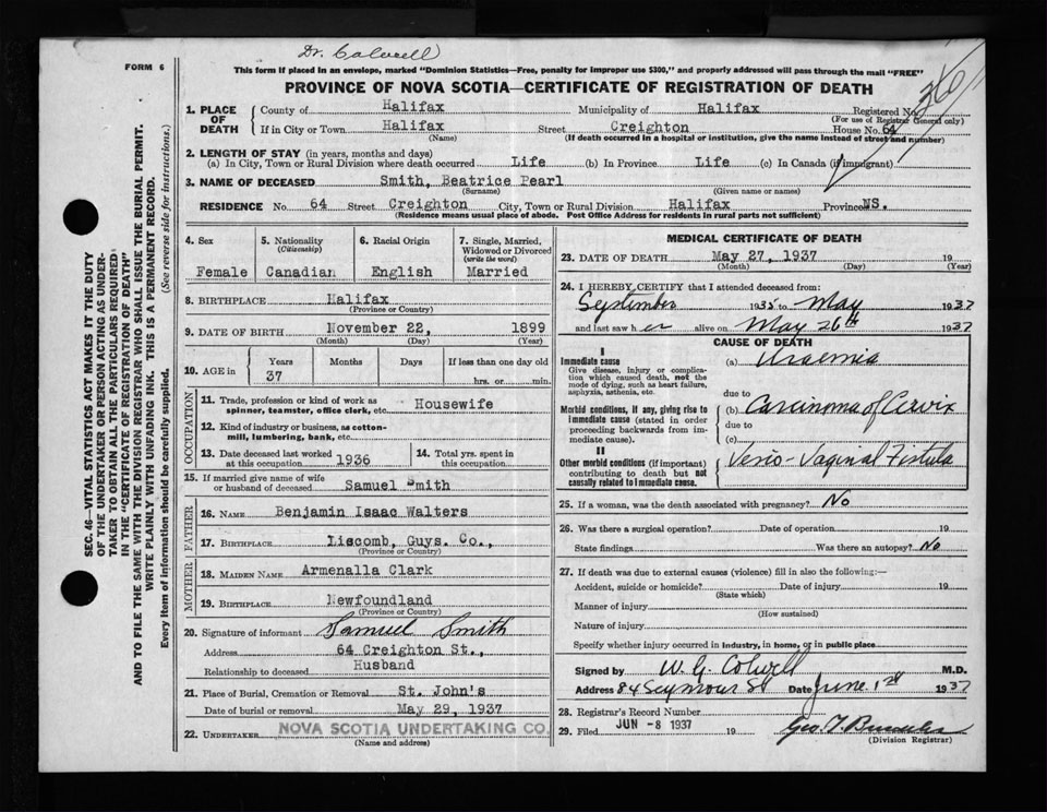 Nova Scotia Archives — https://archives.novascotia.ca/vital-statistics/death/?ID=284020