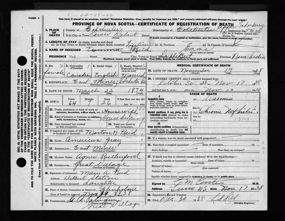 Nova Scotia Archives — https://archives.novascotia.ca/vital-statistics/death/?ID=285153