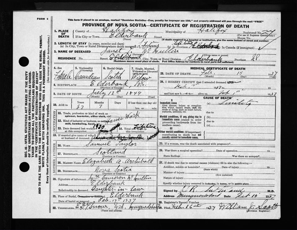 Nova Scotia Archives — https://archives.novascotia.ca/vital-statistics/death/?ID=285737