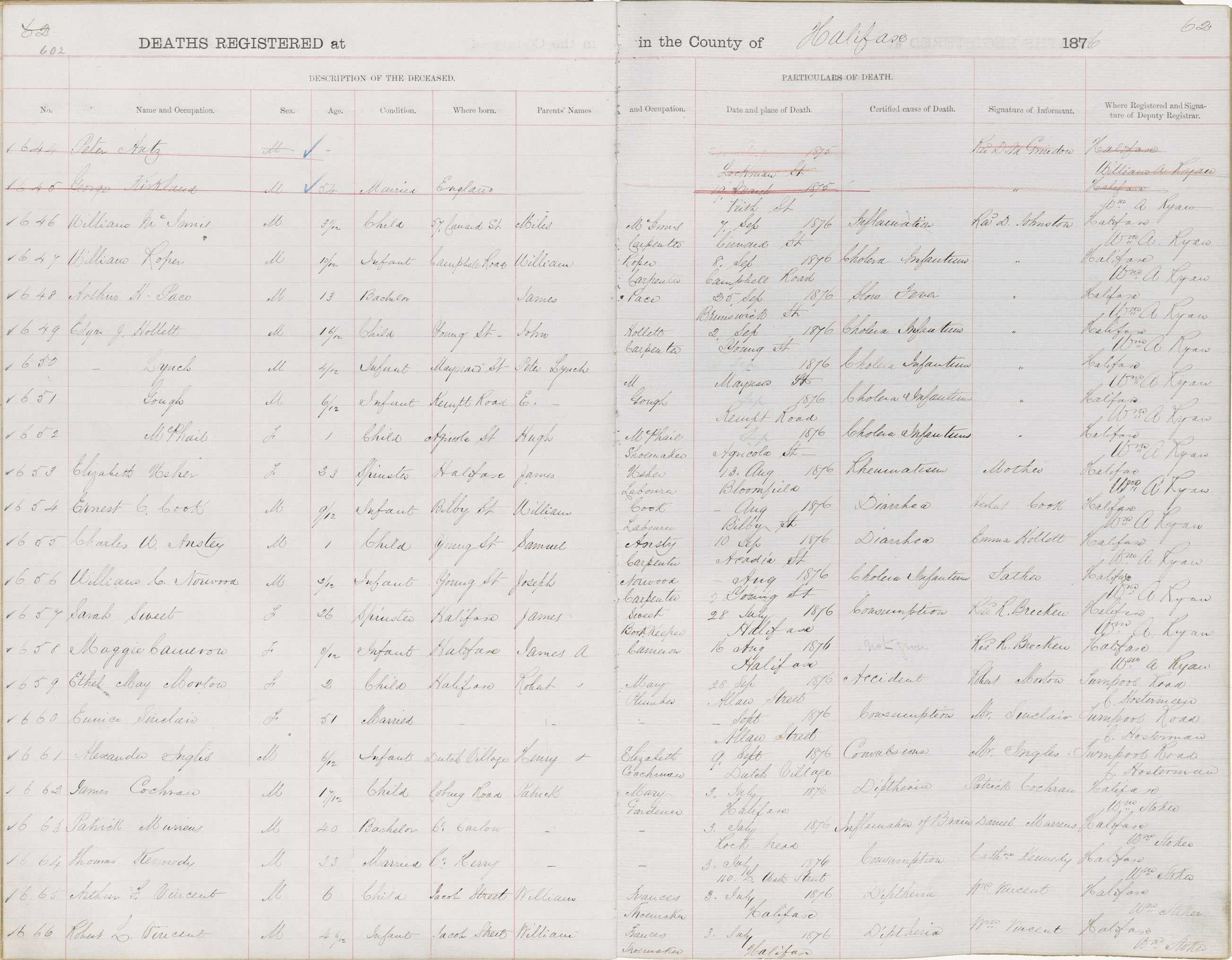 Death Registration: Year: 1876 book: 1808 page: 602 number: 648