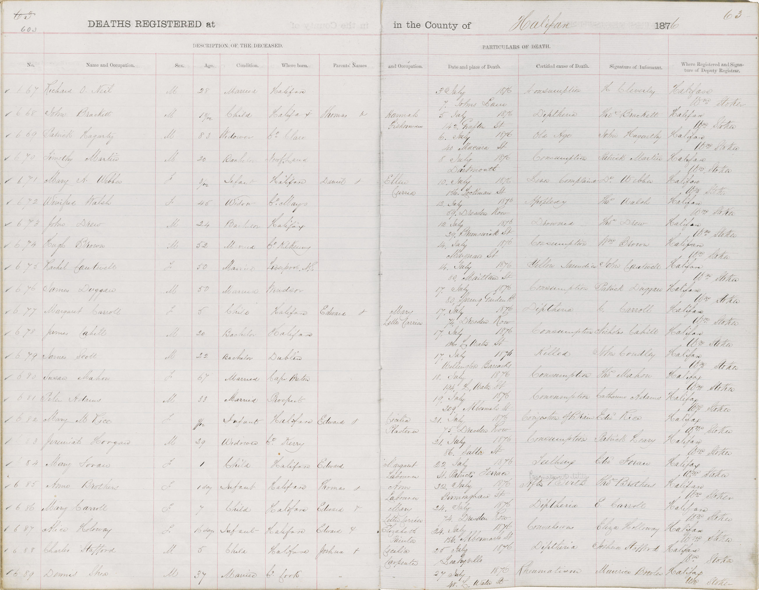 Death Registration: Year: 1876 book: 1808 page: 603 number: 667
