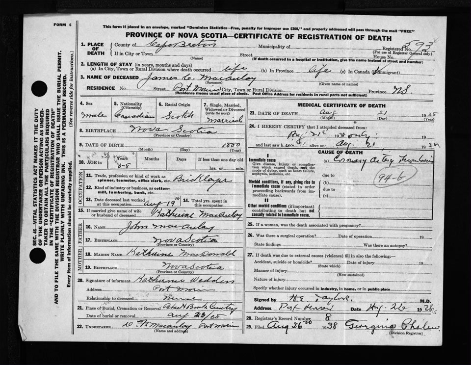 Nova Scotia Archives — https://archives.novascotia.ca/vital-statistics/death/?ID=291097