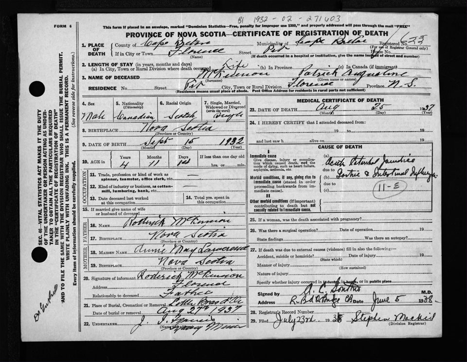 Nova Scotia Archives — https://archives.novascotia.ca/vital-statistics/death/?ID=291127