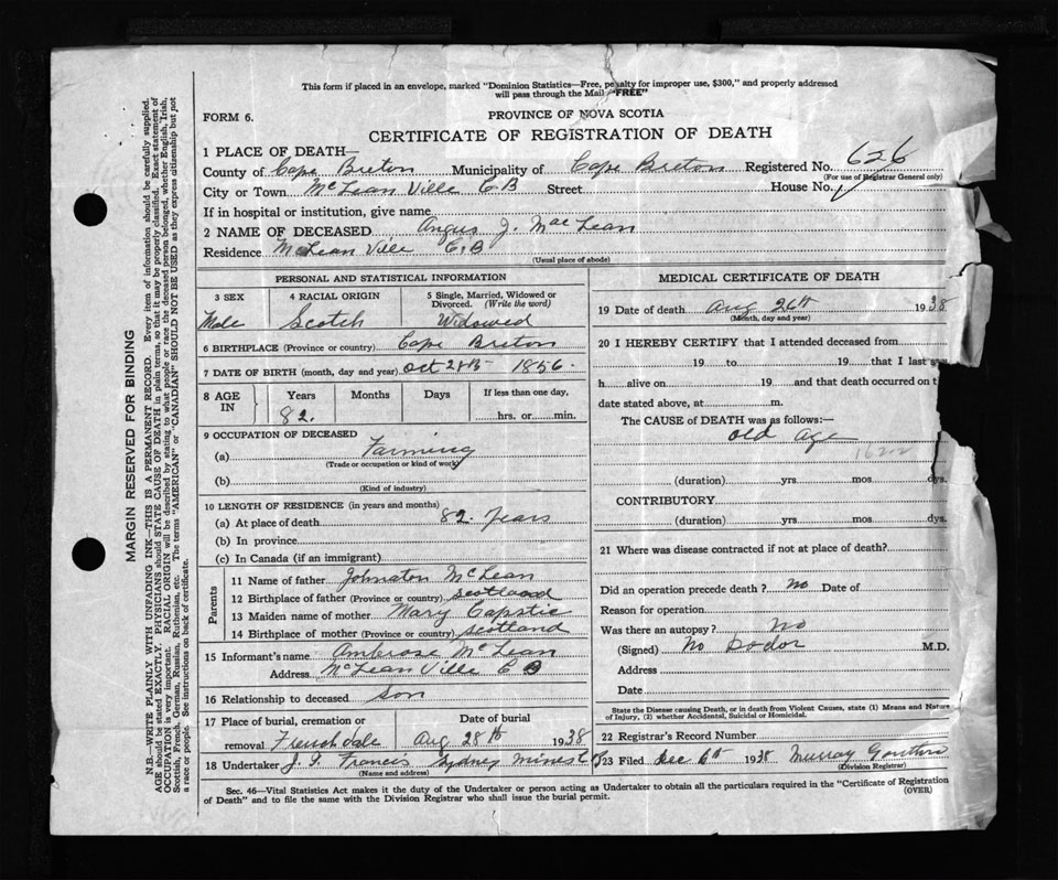 Nova Scotia Archives — https://archives.novascotia.ca/vital-statistics/death/?ID=291130