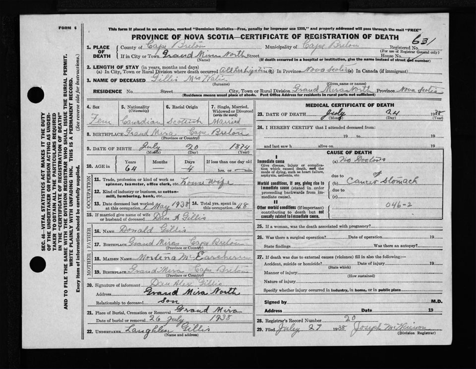 Nova Scotia Archives — https://archives.novascotia.ca/vital-statistics/death/?ID=291135