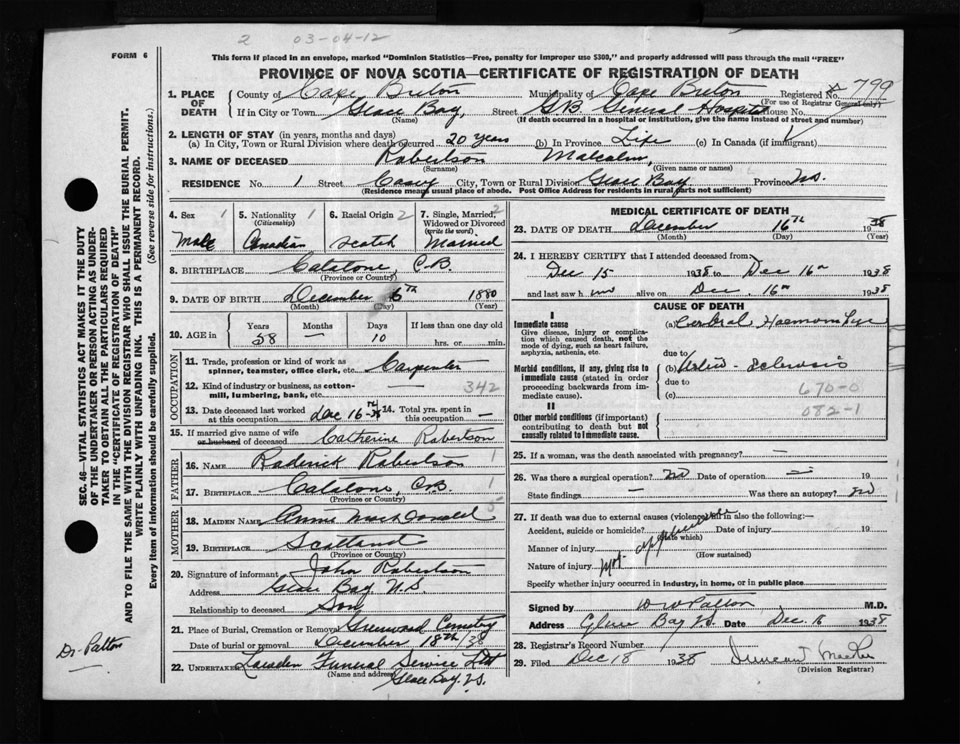 Nova Scotia Archives — https://archives.novascotia.ca/vital-statistics/death/?ID=291301