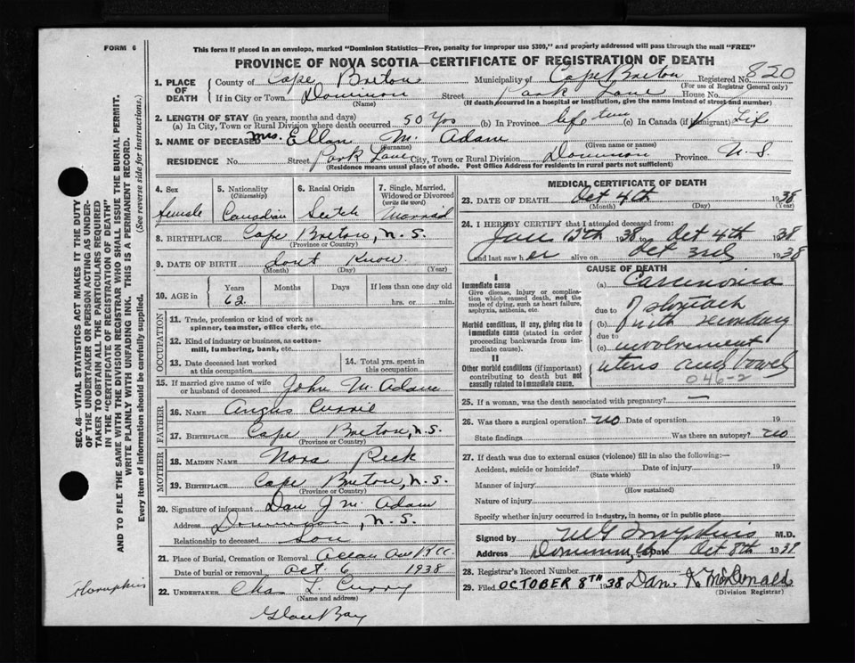 Nova Scotia Archives — https://archives.novascotia.ca/vital-statistics/death/?ID=291322