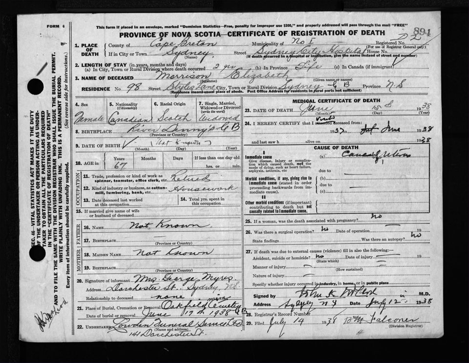 Nova Scotia Archives — https://archives.novascotia.ca/vital-statistics/death/?ID=291396