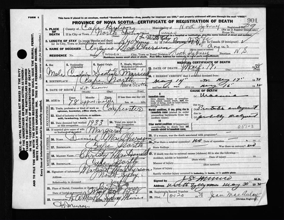Nova Scotia Archives — https://archives.novascotia.ca/vital-statistics/death/?ID=291403