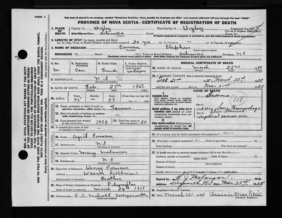 Nova Scotia Archives — https://archives.novascotia.ca/vital-statistics/death/?ID=291505