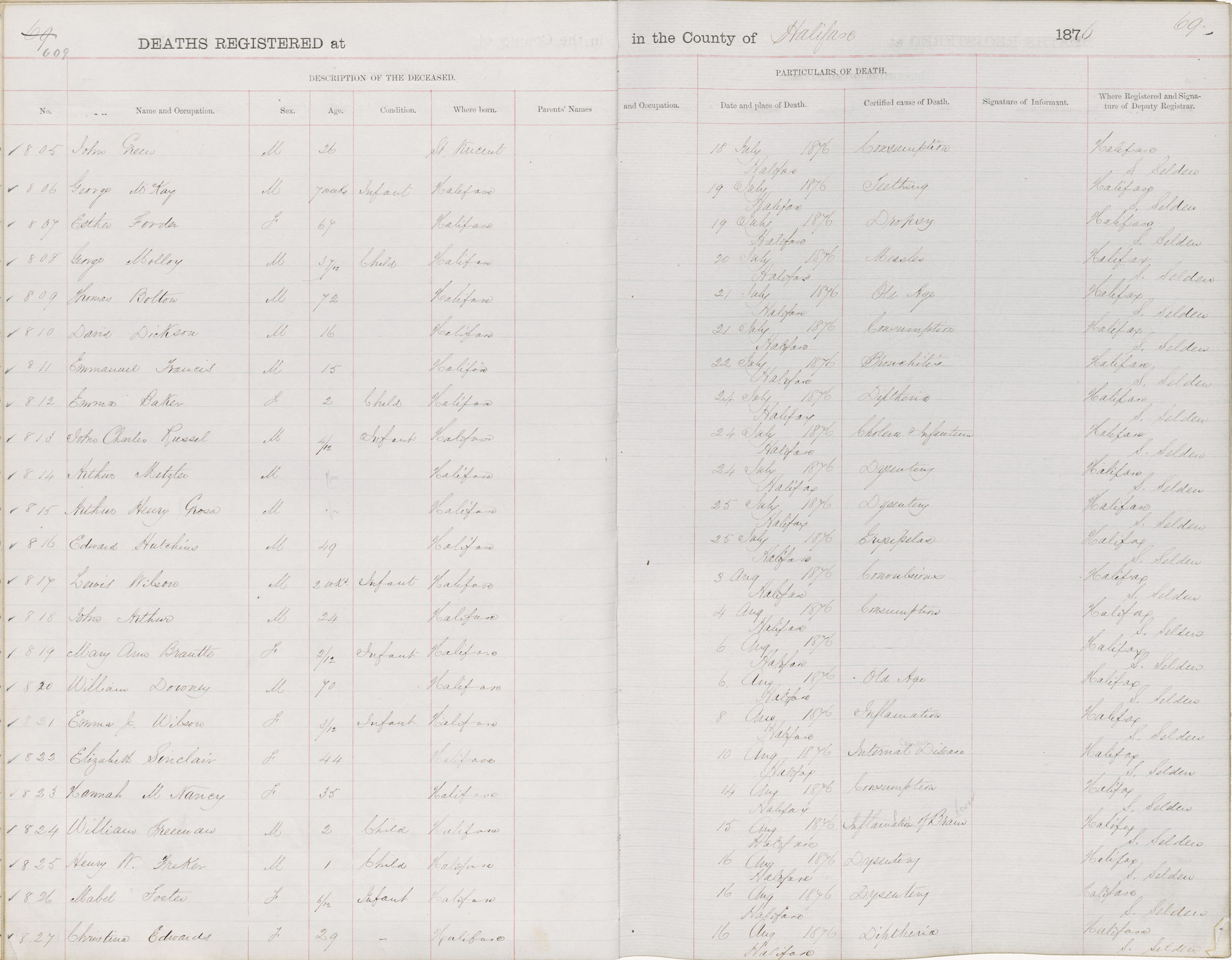 Death Registration: Year: 1876 book: 1808 page: 609 number: 827