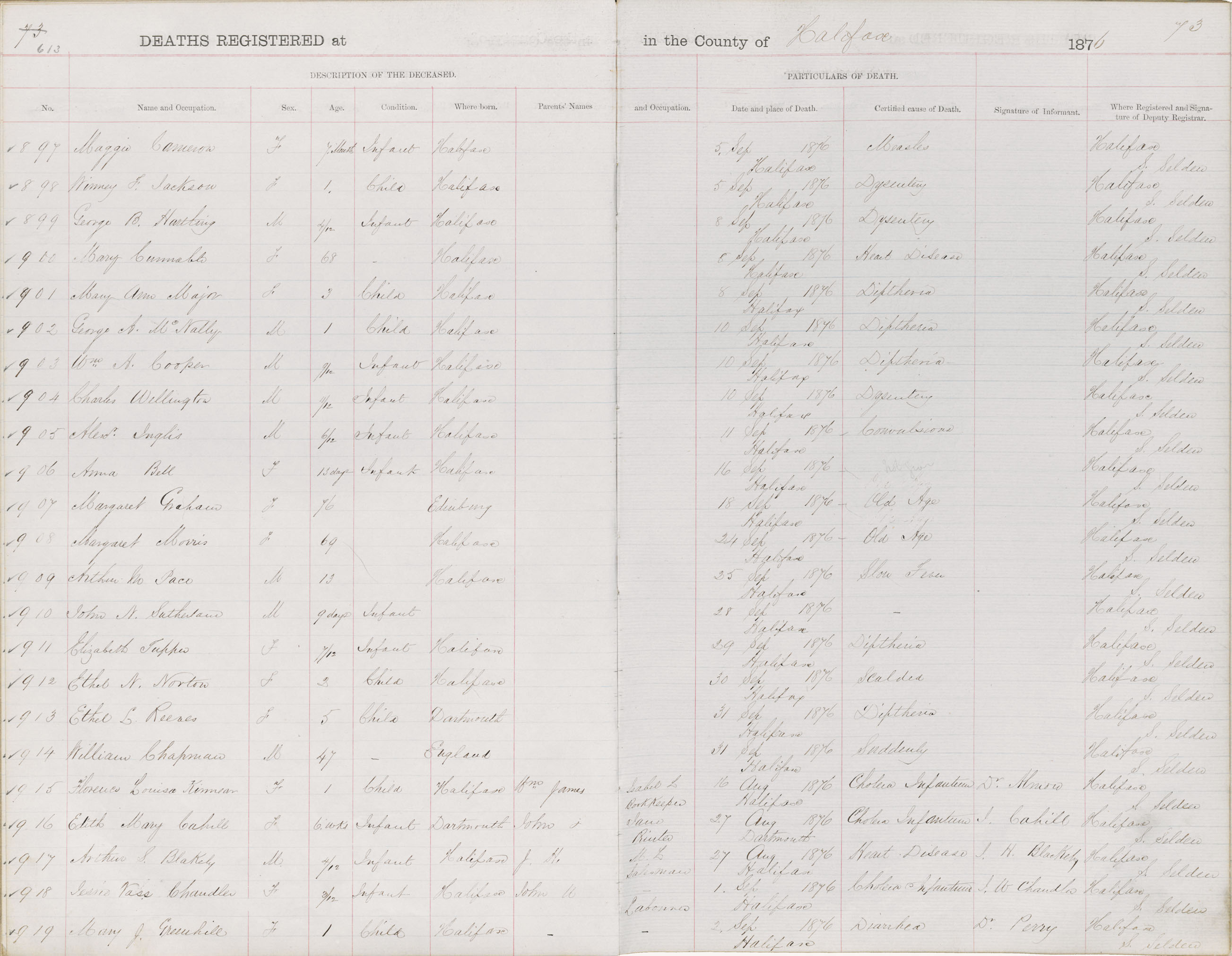 Death Registration: Year: 1876 book: 1808 page: 613 number: 909