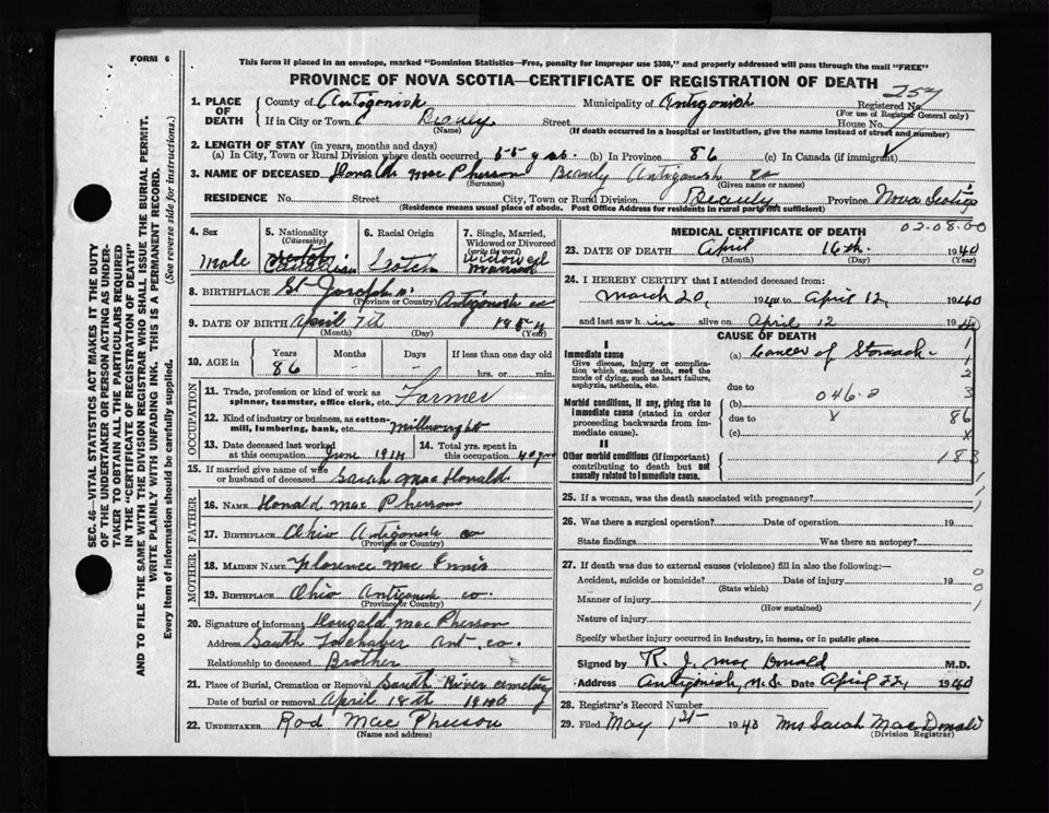 Nova Scotia Archives — https://archives.novascotia.ca/vital-statistics/death/?ID=299110
