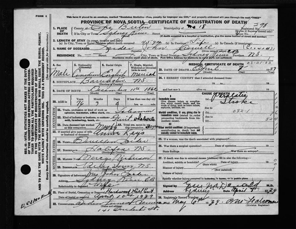 Nova Scotia Archives — https://archives.novascotia.ca/vital-statistics/death/?ID=300300