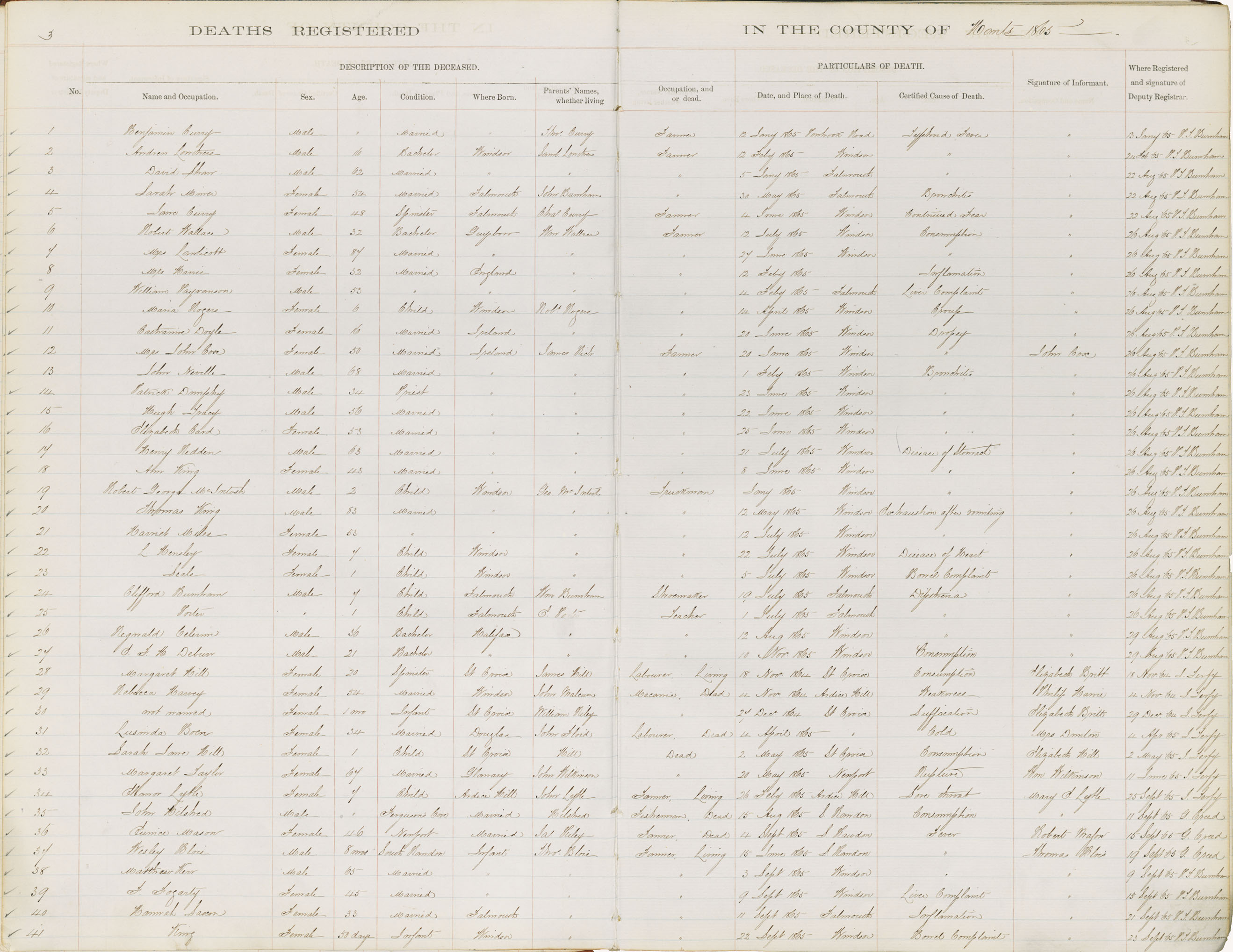 Female Death Registration: Year: 1865 book: 1809 page: 3 number: 41