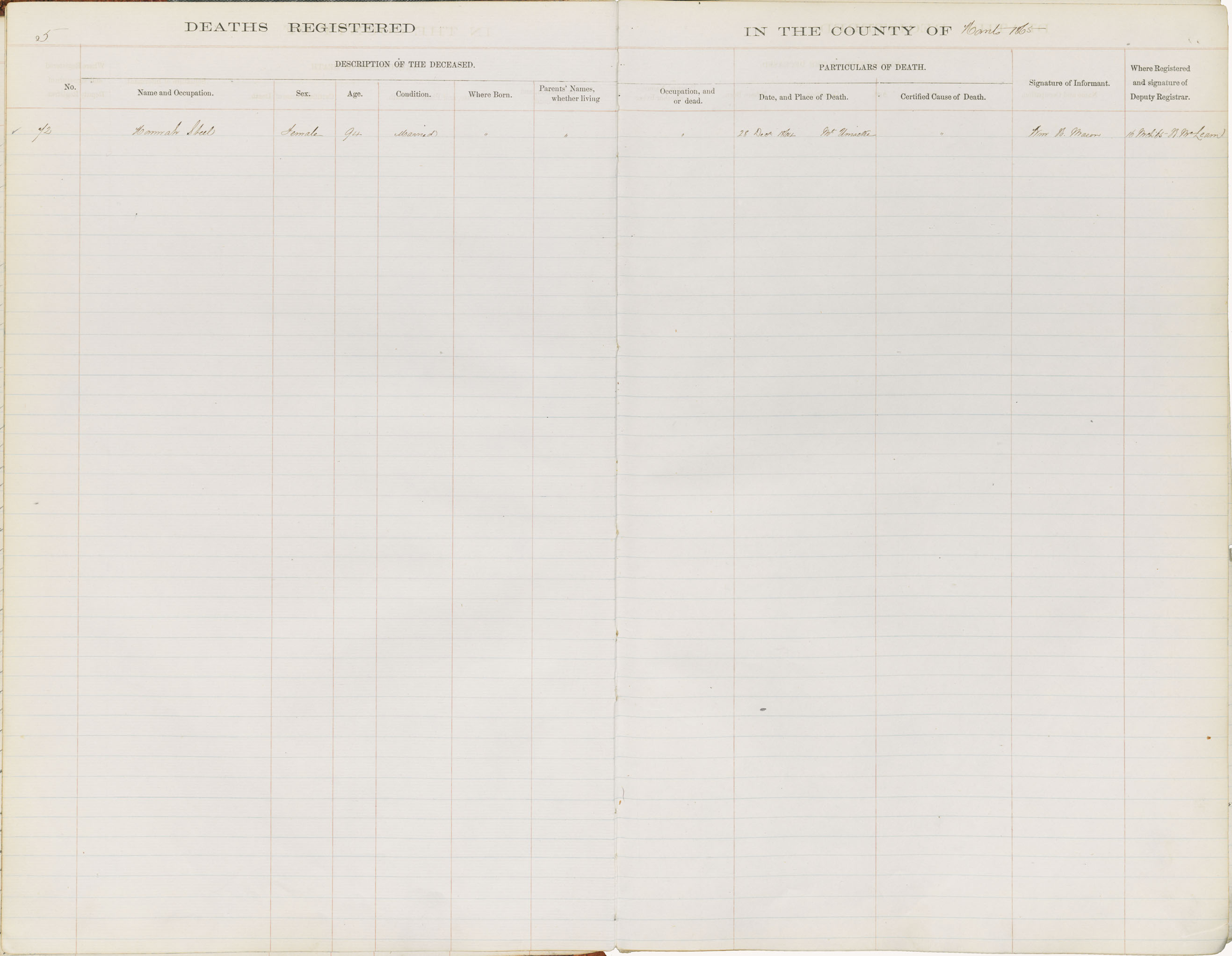 Death Registration: Year: 1865 book: 1809 page: 5 number: 72