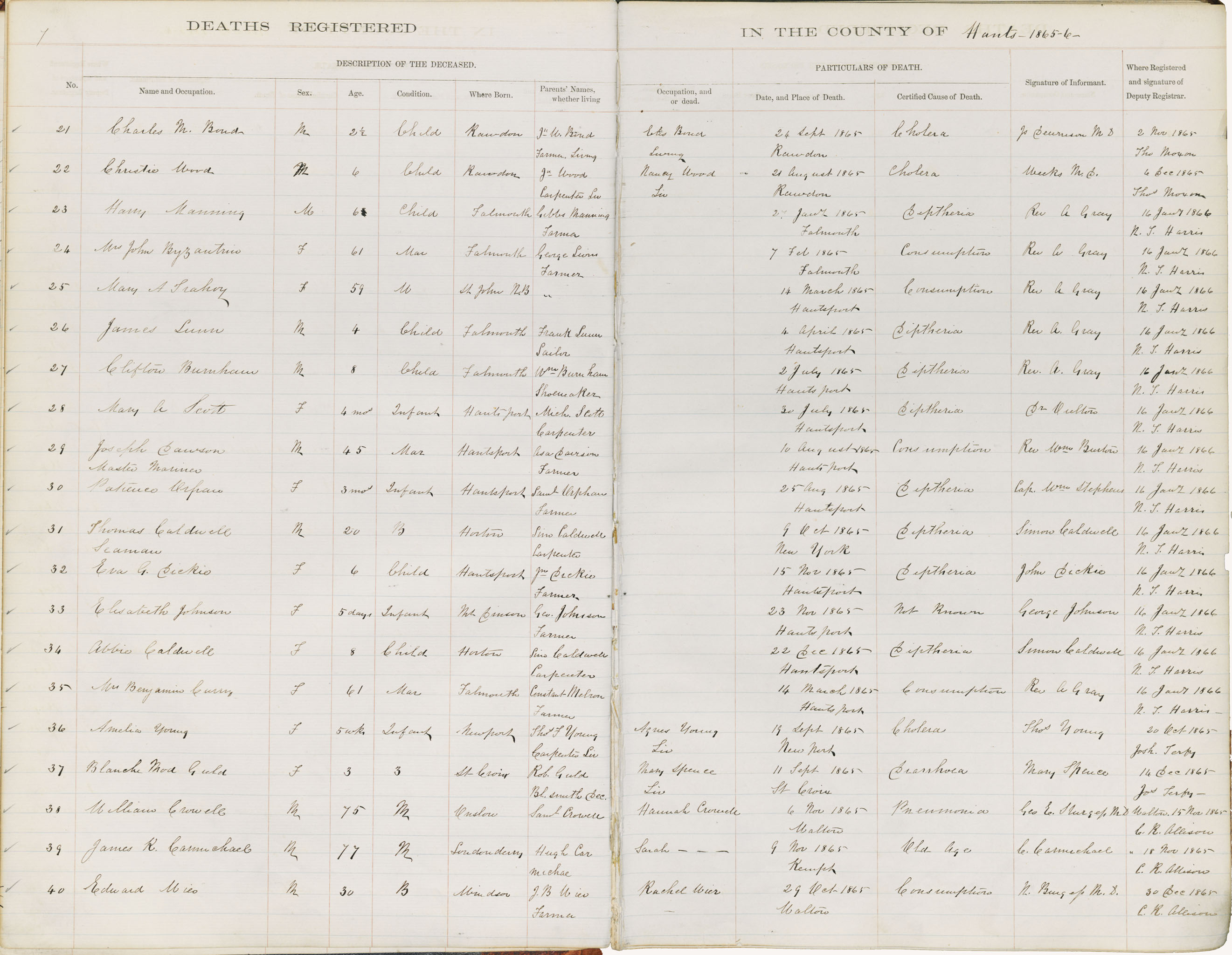 Death Registration: Year: 1865 book: 1809 page: 7 number: 40