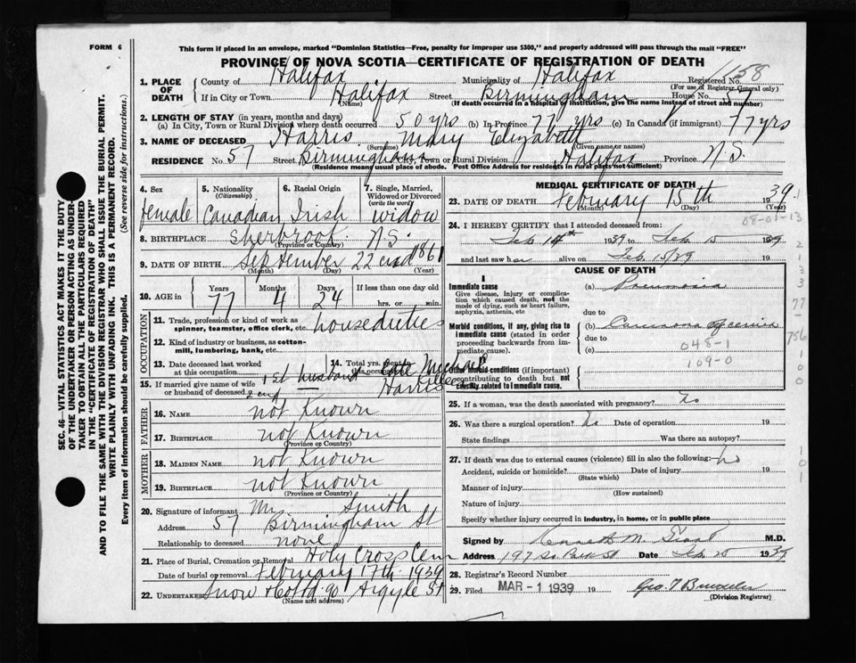 Nova Scotia Archives — https://archives.novascotia.ca/vital-statistics/death/?ID=303141