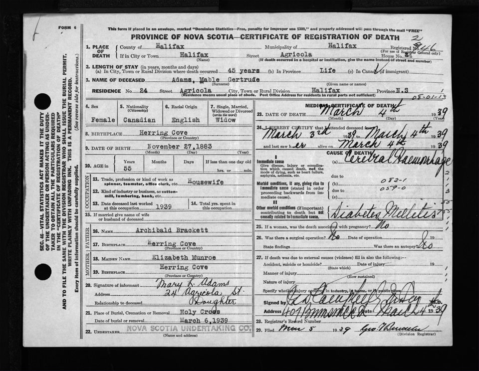 Nova Scotia Archives — https://archives.novascotia.ca/vital-statistics/death/?ID=303229