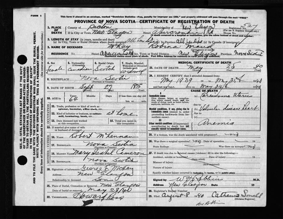 Nova Scotia Archives — https://archives.novascotia.ca/vital-statistics/death/?ID=305045