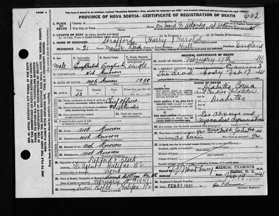 Male Death Registration: Year: 1941 file: 197 number: 602