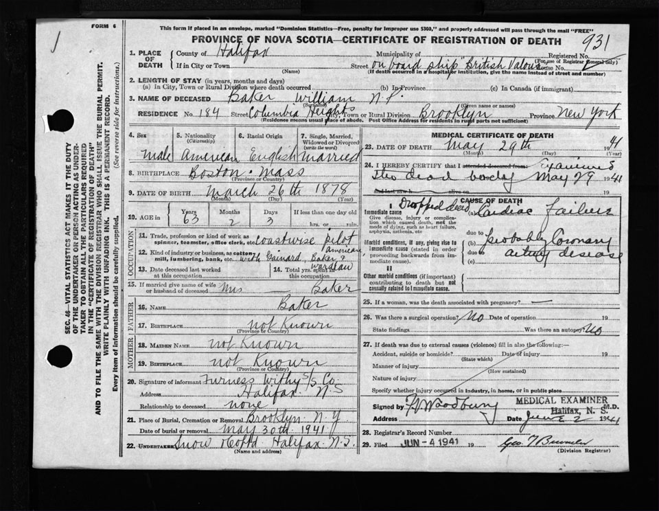 Male Death Registration: Year: 1941 file: 197 number: 931