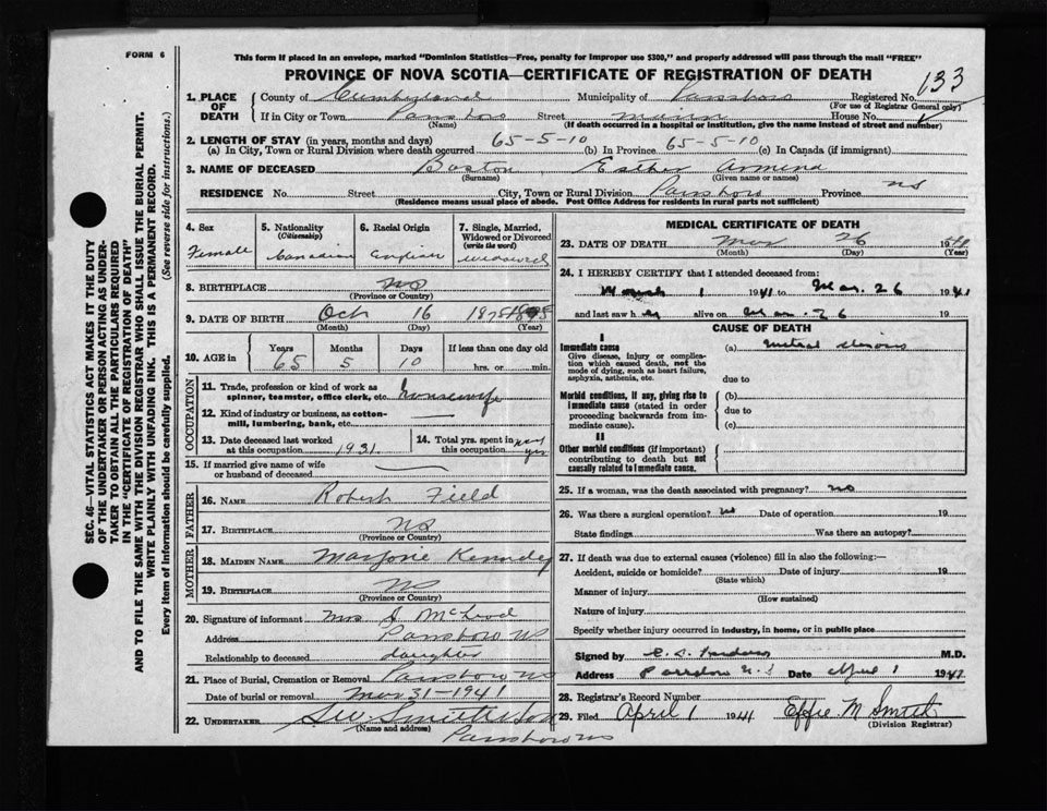 Nova Scotia Archives — https://archives.novascotia.ca/vital-statistics/death/?ID=313169