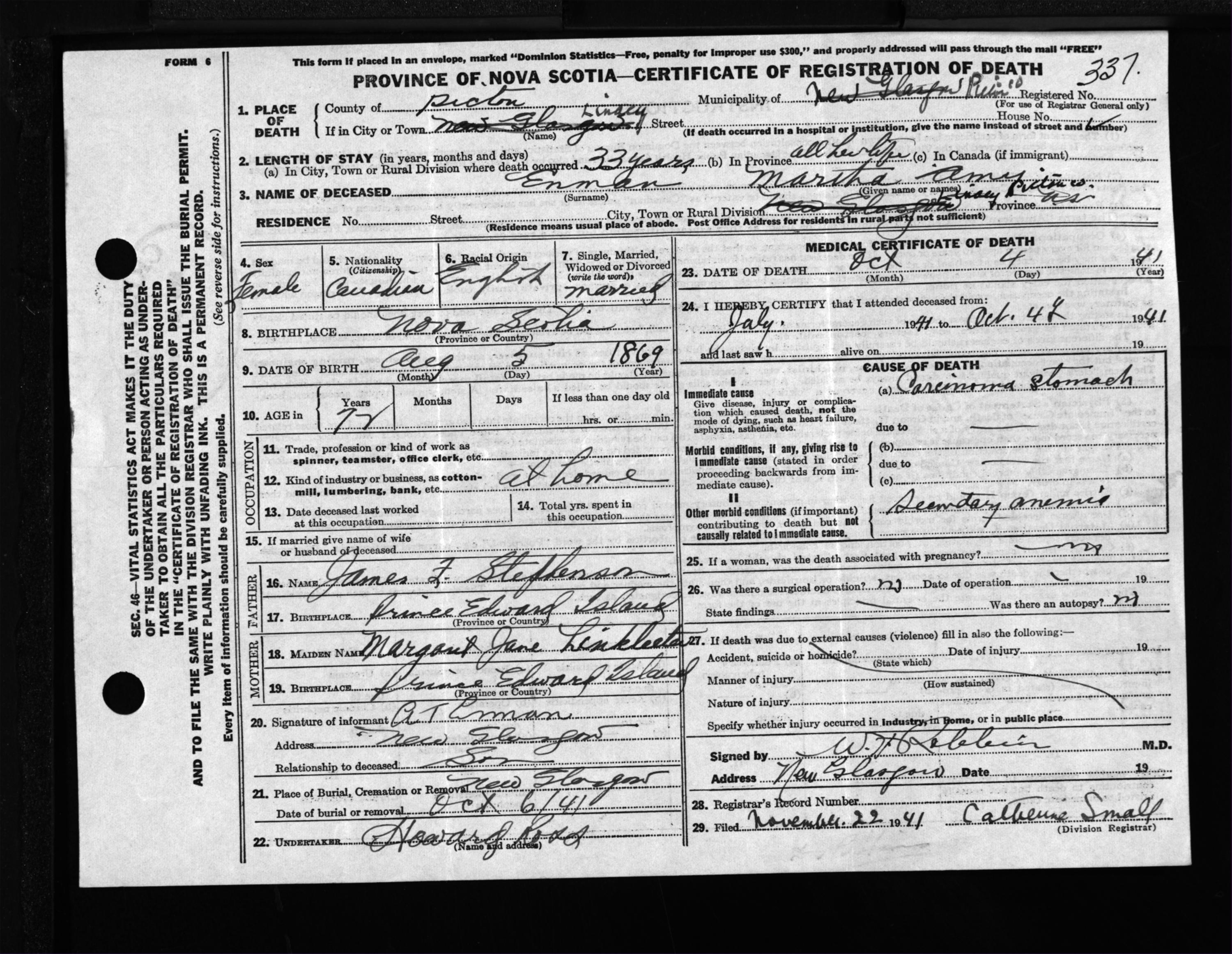 Nova Scotia Archives — https://archives.novascotia.ca/vital-statistics/death/?ID=314322