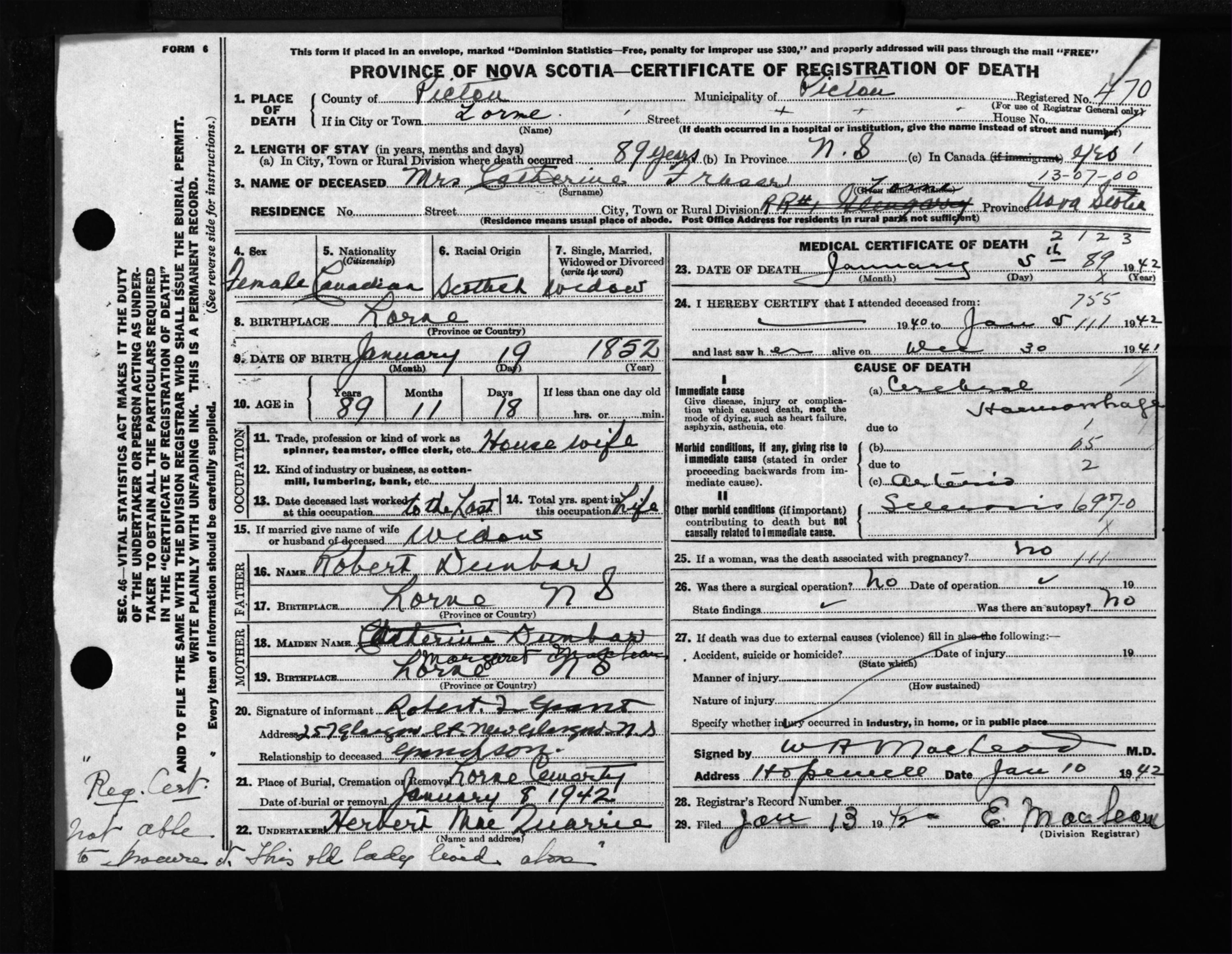 Female Death Registration: Year: 1942 file: 200 number: 470