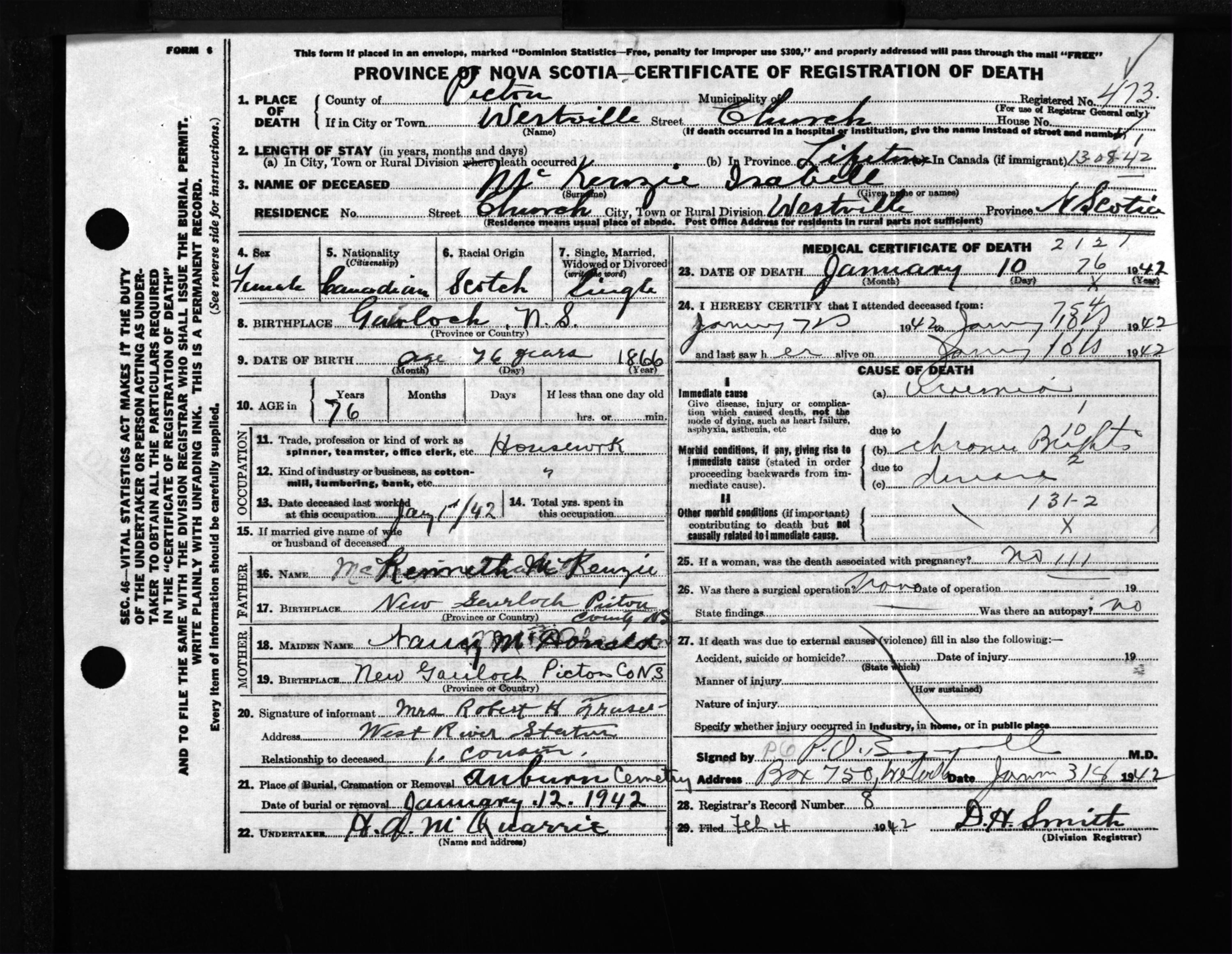 Female Death Registration: Year: 1942 file: 200 number: 473