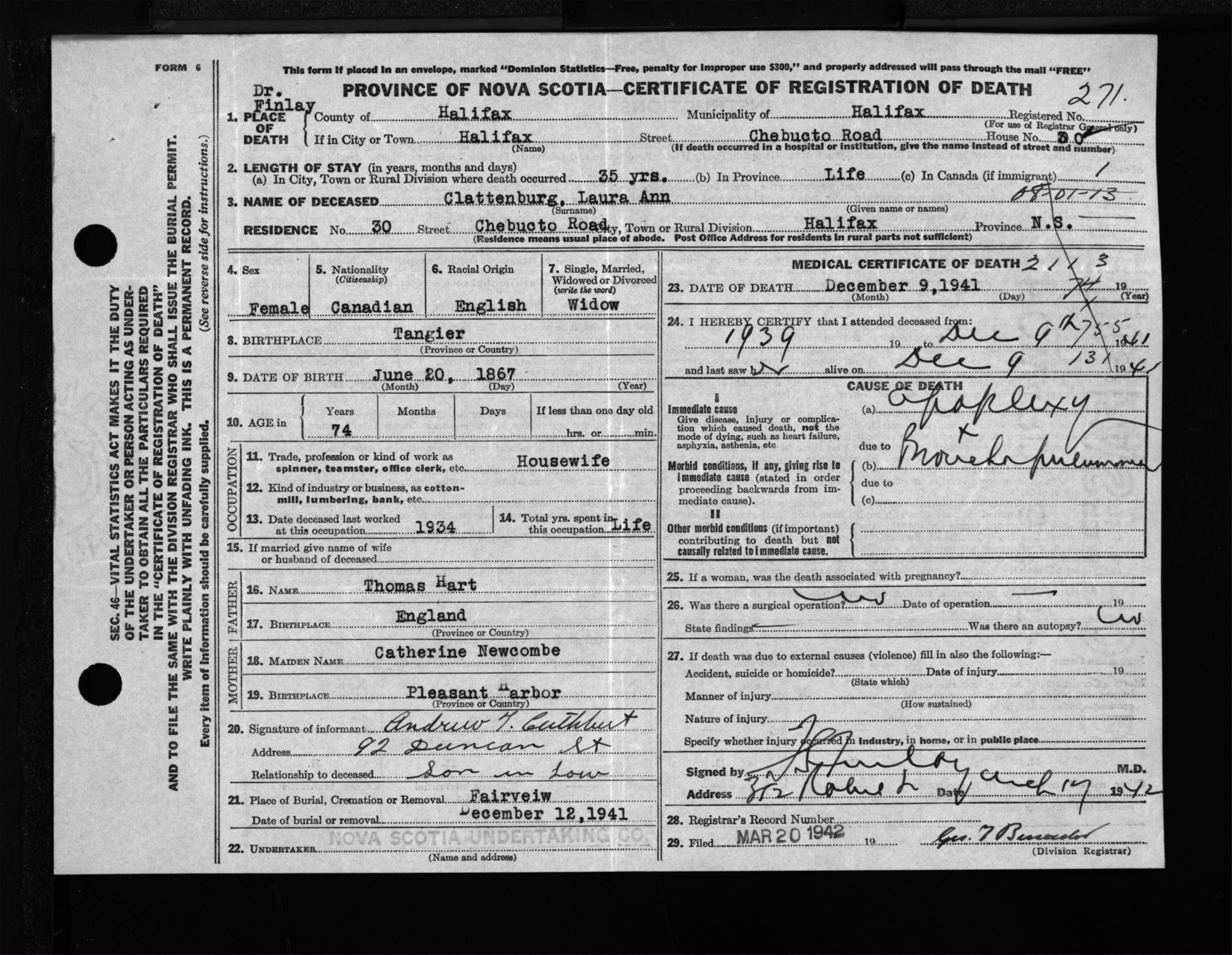 Nova Scotia Archives — https://archives.novascotia.ca/vital-statistics/death/?ID=315166