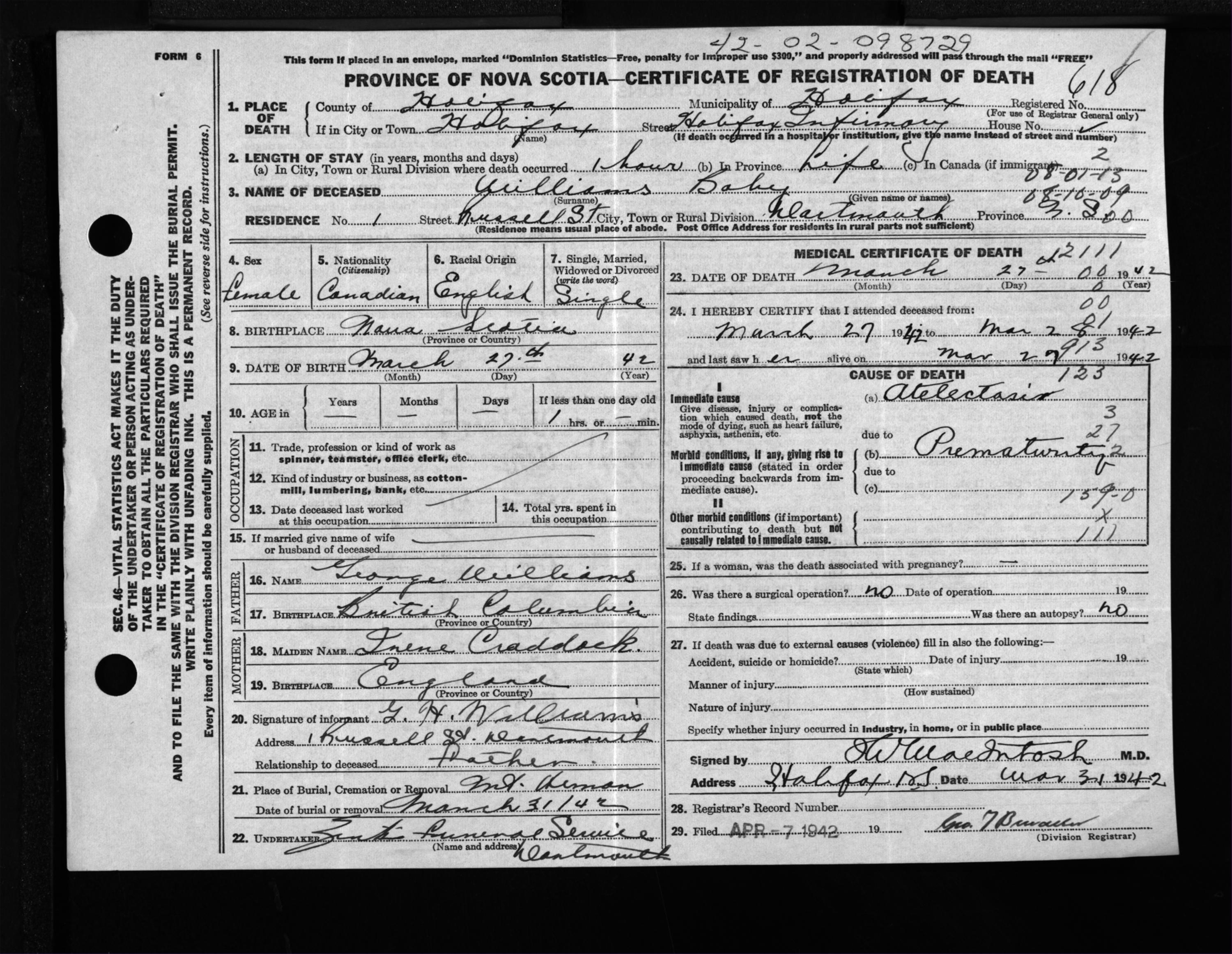 Female Death Registration: Year: 1942 file: 201 number: 618
