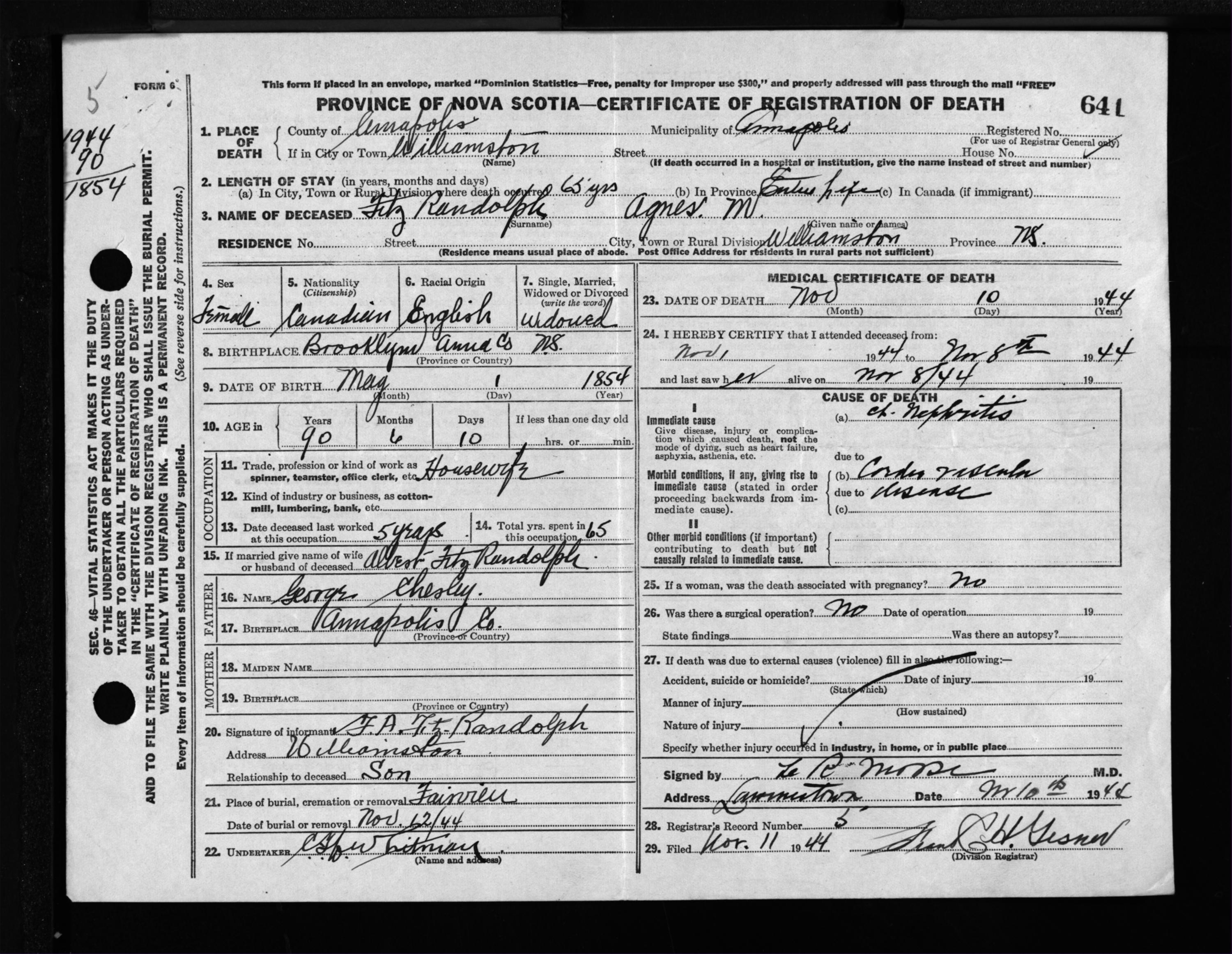 Female Death Registration: Year: 1944 file: 202 number: 641