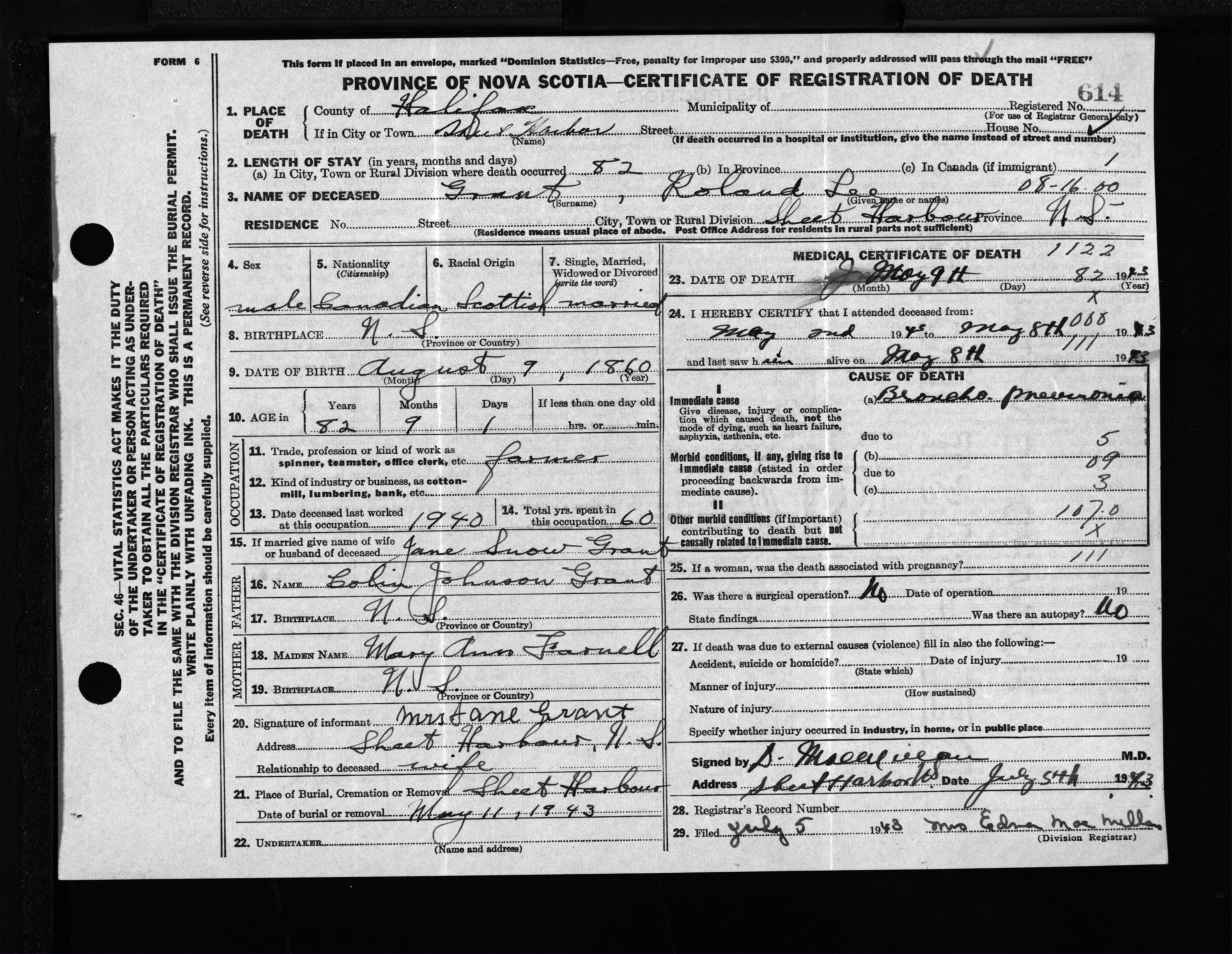 Nova Scotia Archives — https://archives.novascotia.ca/vital-statistics/death/?ID=319563