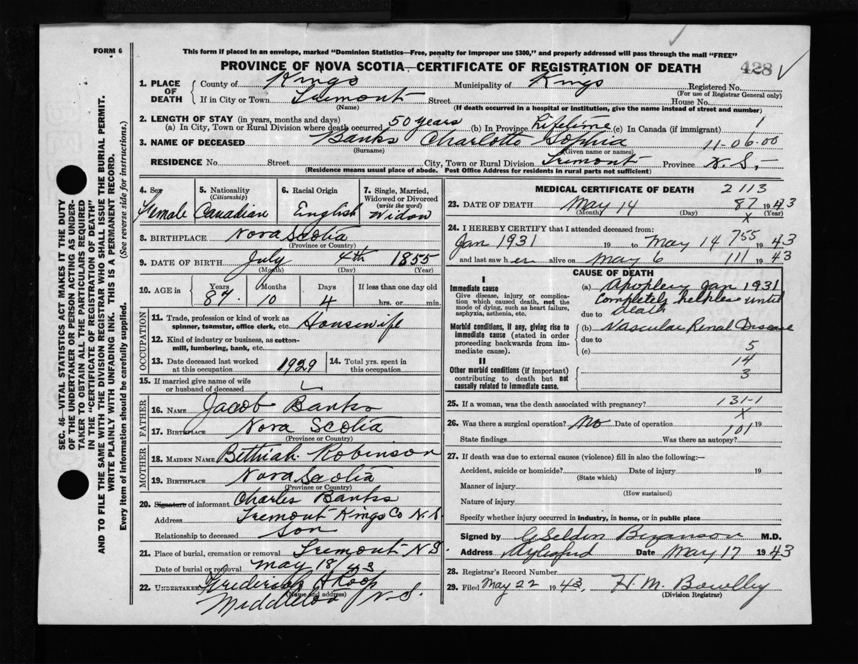 Nova Scotia Archives — https://archives.novascotia.ca/vital-statistics/death/?ID=322053