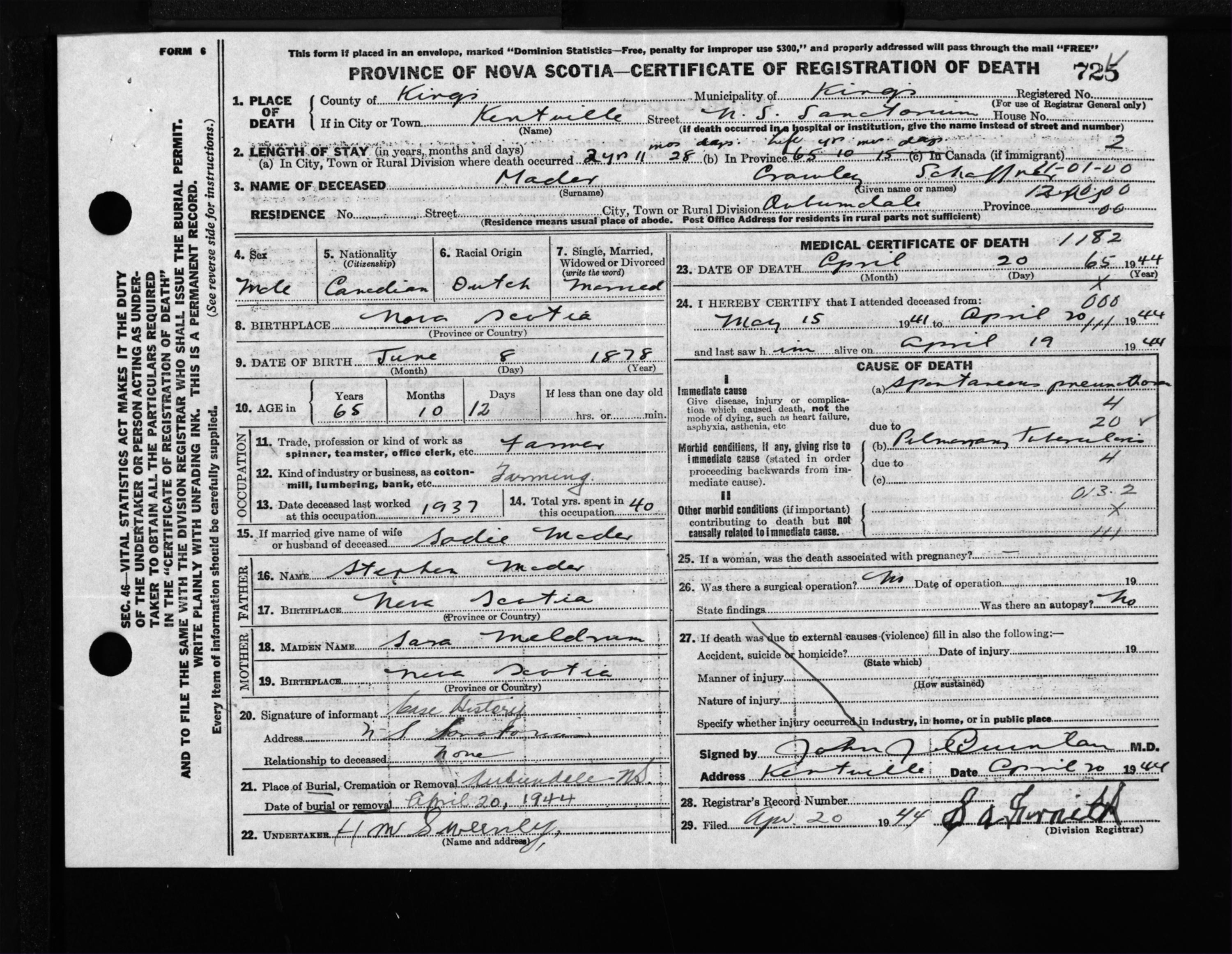 Nova Scotia Archives — https://archives.novascotia.ca/vital-statistics/death/?ID=322350