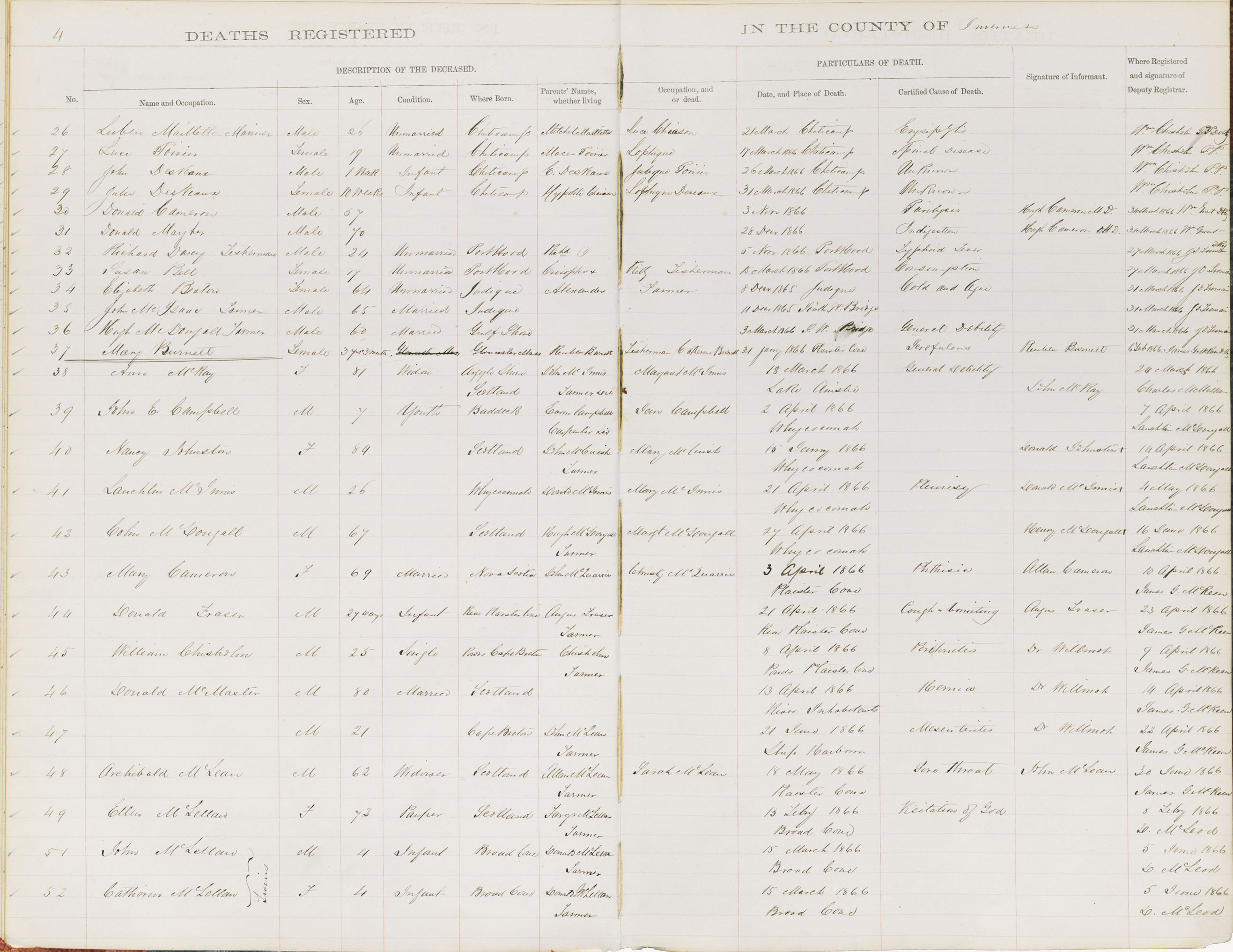 Death Registration: Year: 1866 book: 1810 page: 4 number: 52