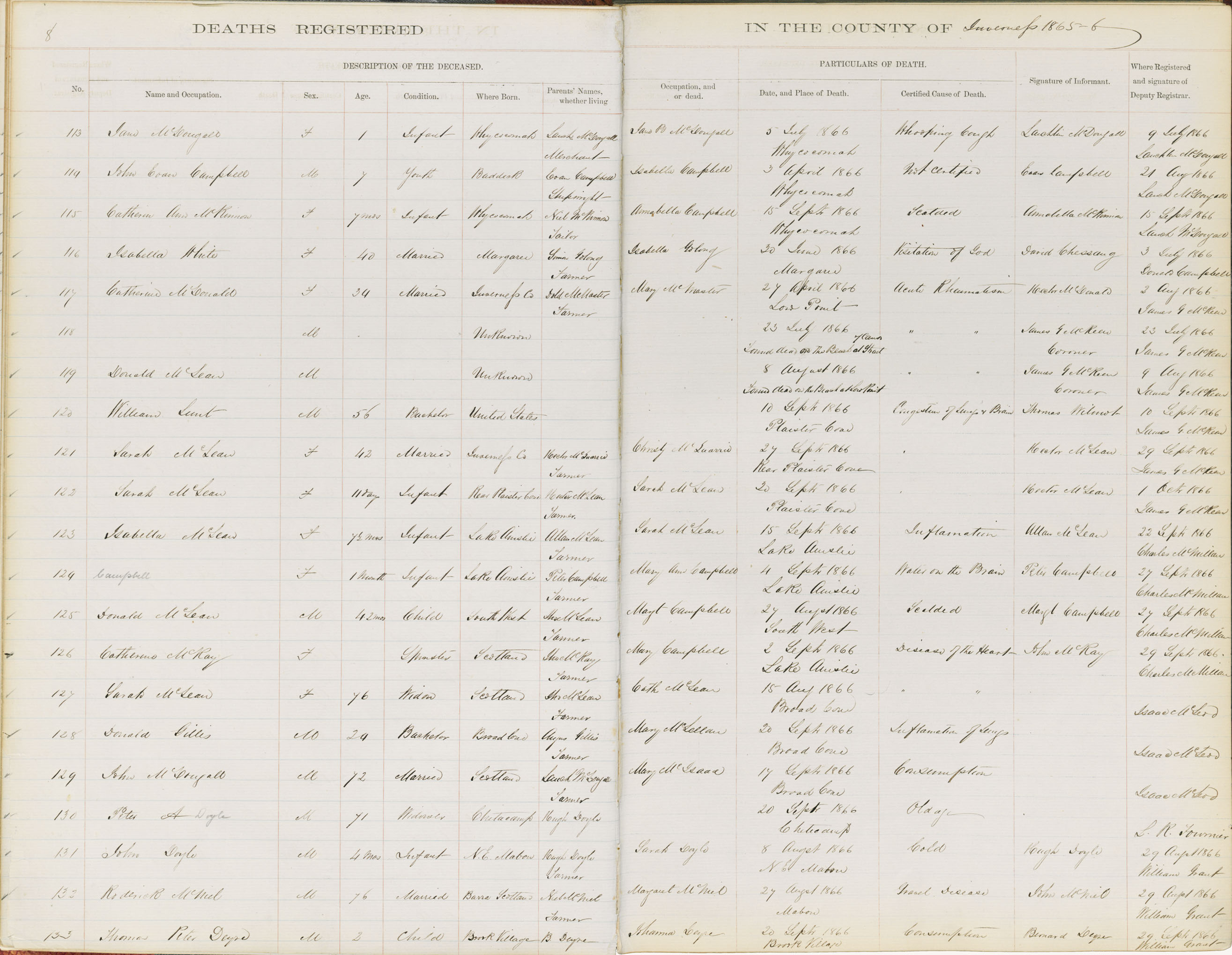 Death Registration: Year: 1866 book: 1810 page: 8 number: 133