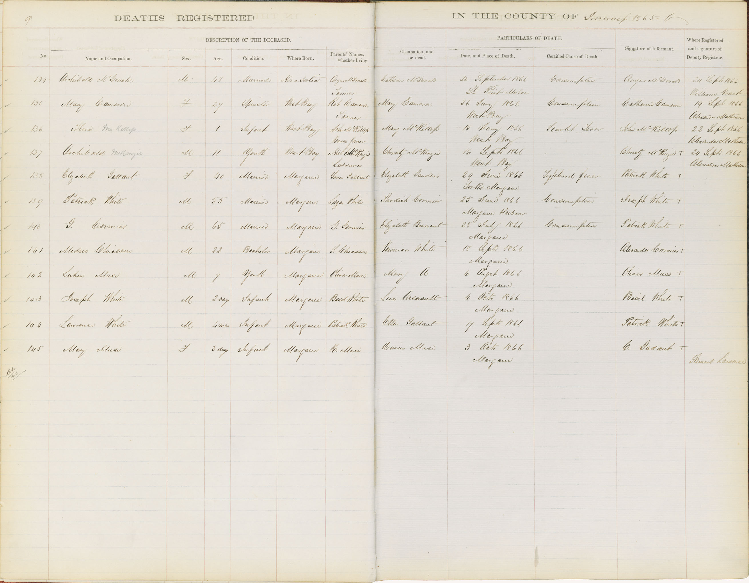Death Registration: Year: 1866 book: 1810 page: 9 number: 145