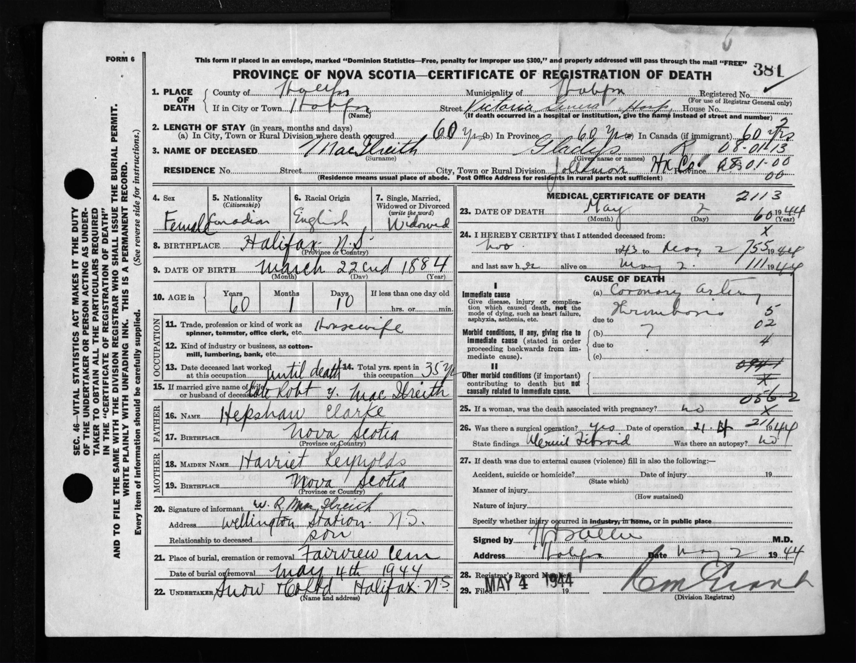 Nova Scotia Archives — https://archives.novascotia.ca/vital-statistics/death/?ID=332620