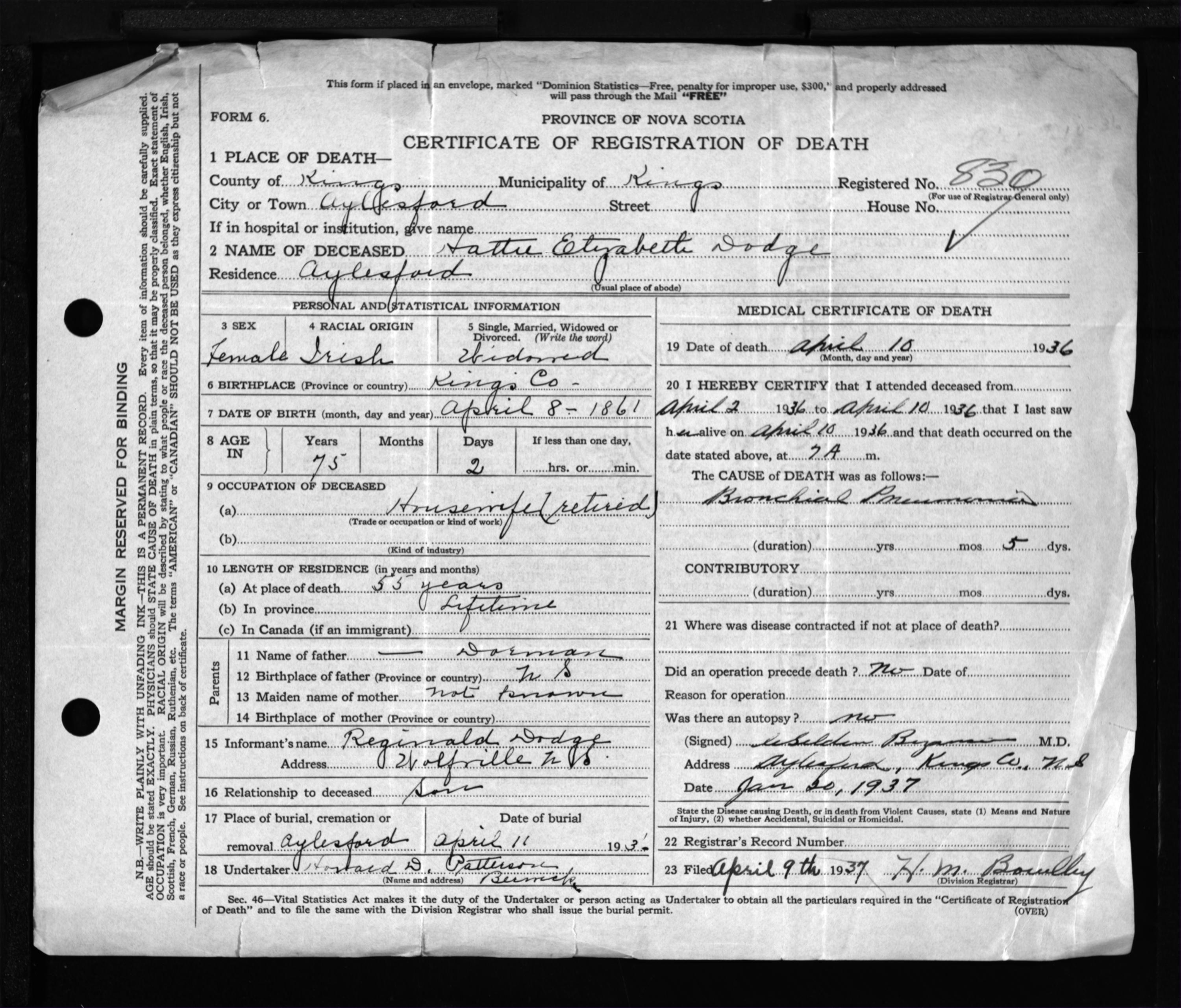 Nova Scotia Archives — https://archives.novascotia.ca/vital-statistics/death/?ID=337220