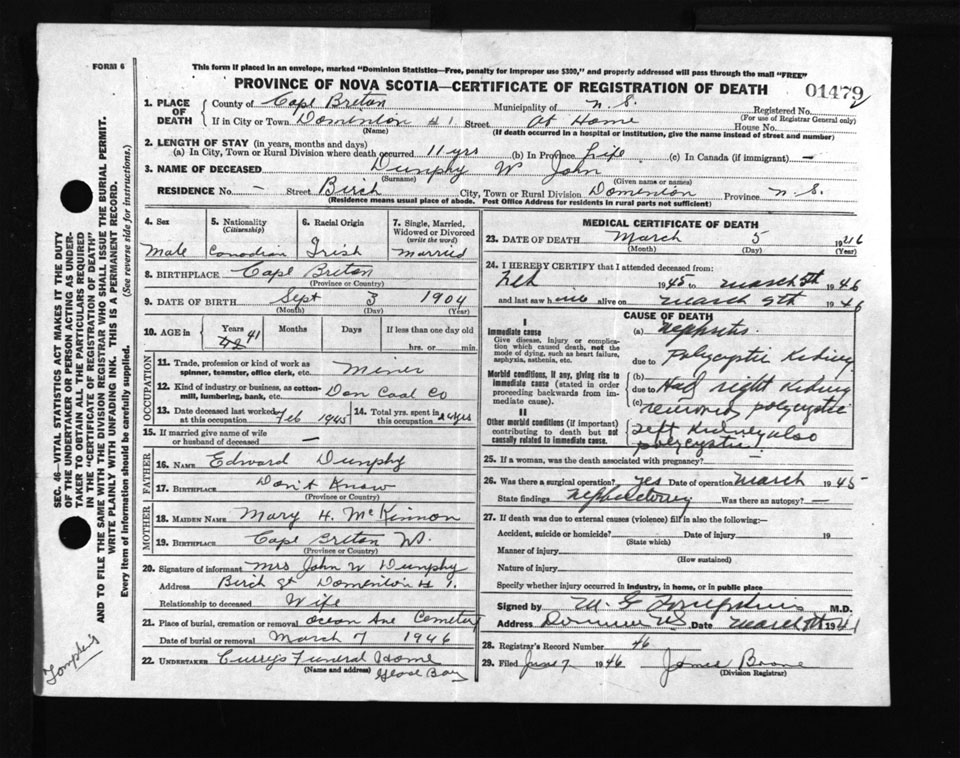 Male Death Registration: Year: 1946 number: 1479