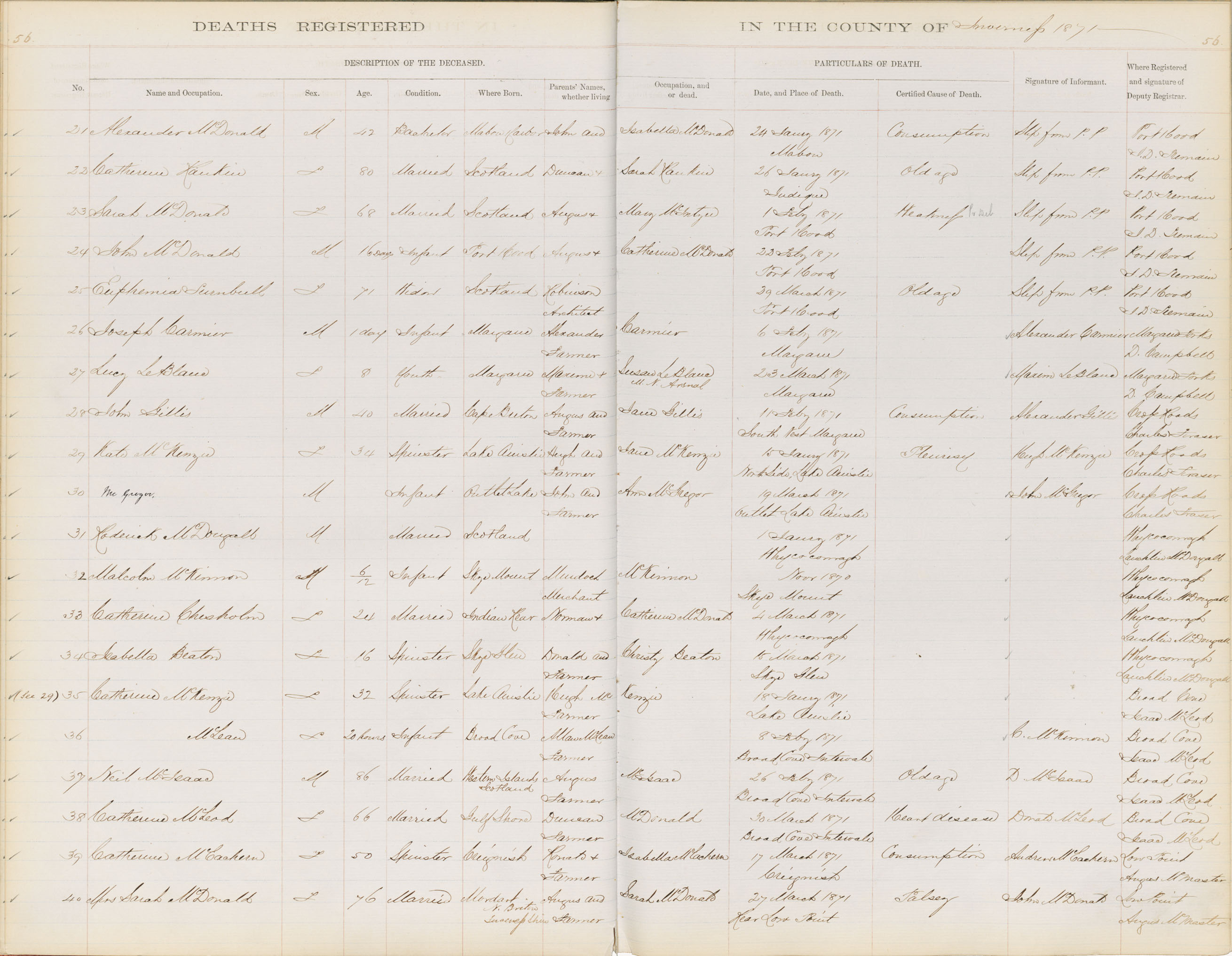 Death Registration: Year: 1871 book: 1810 page: 56 number: 40