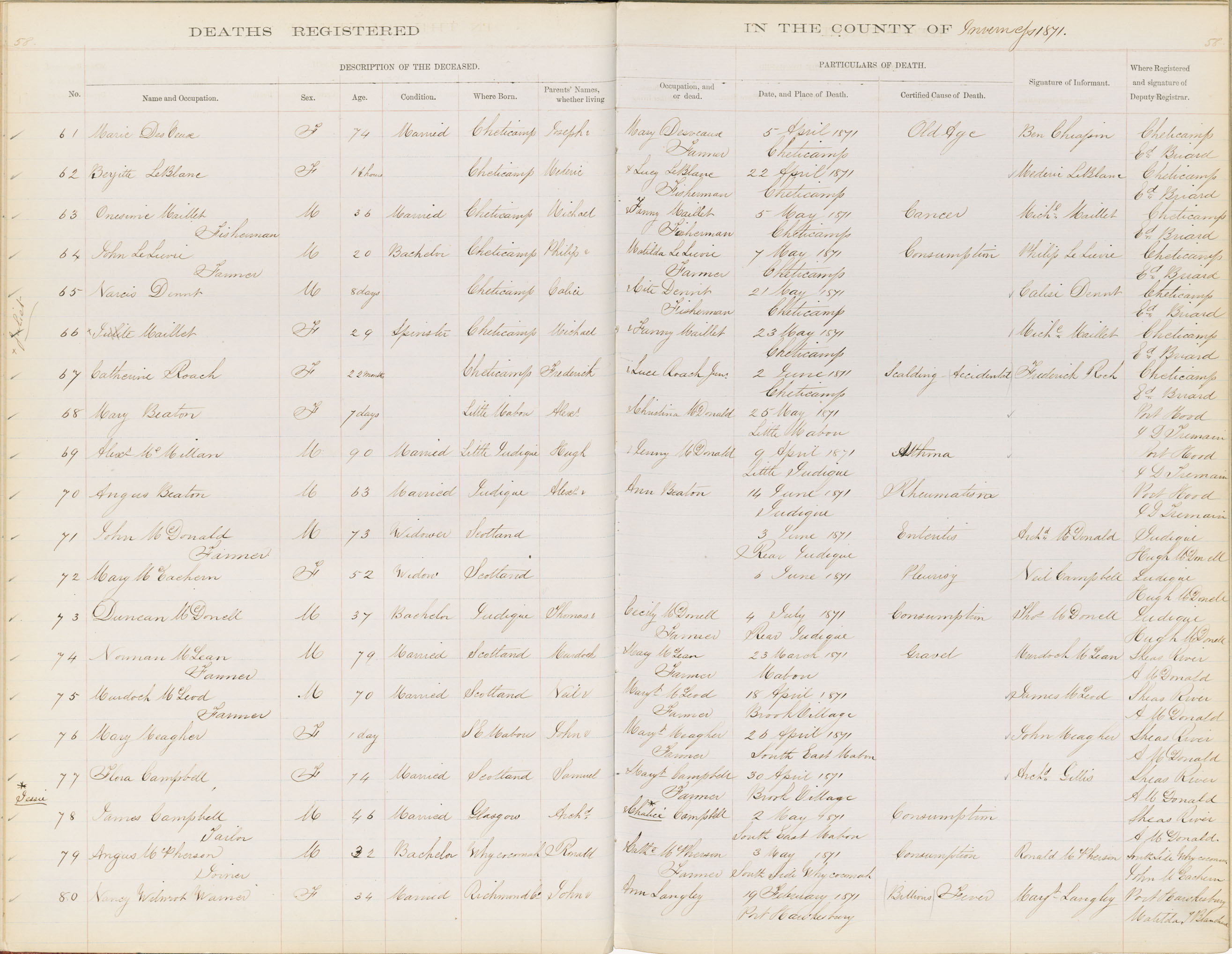 Death Registration: Year: 1871 book: 1810 page: 58 number: 80