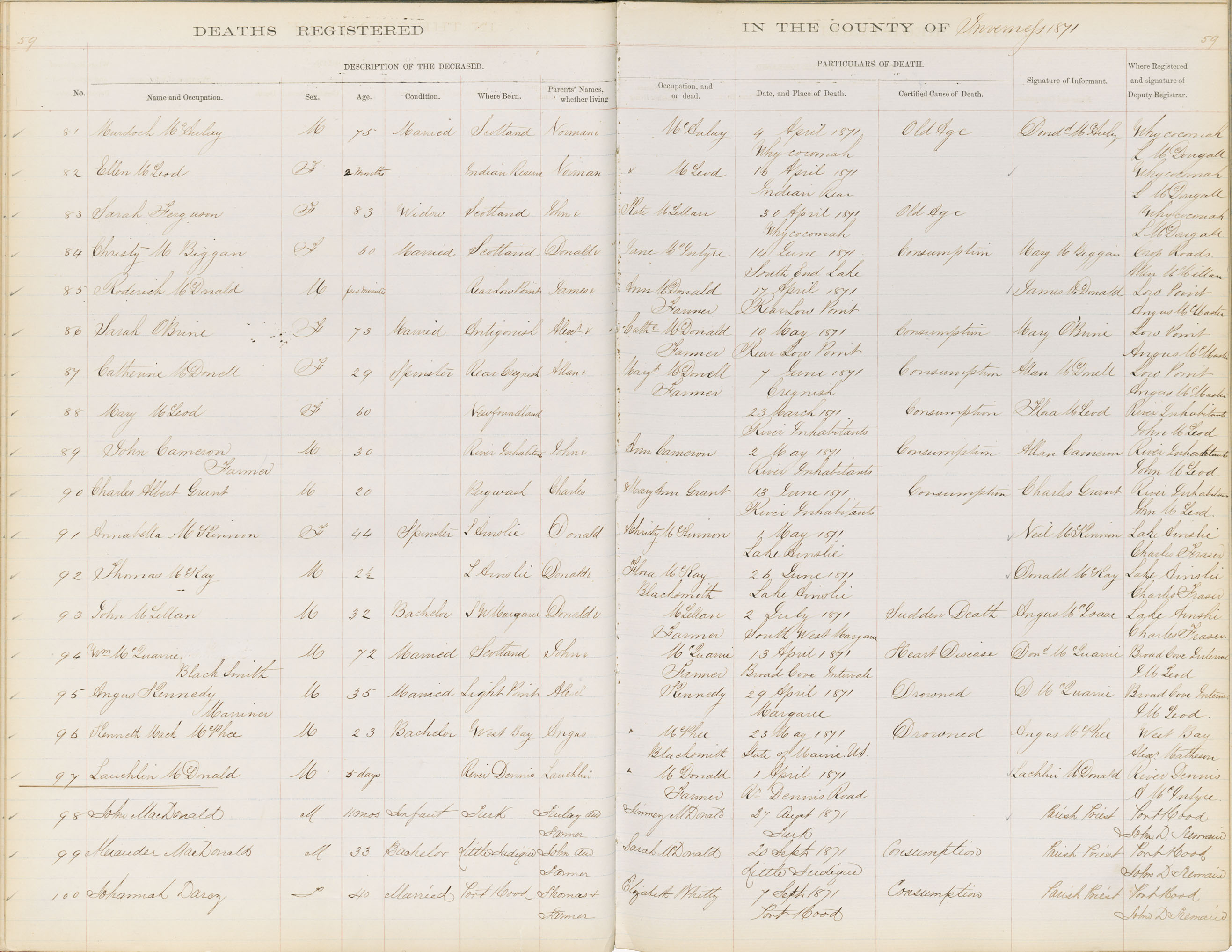 Death Registration: Year: 1871 book: 1810 page: 59 number: 98