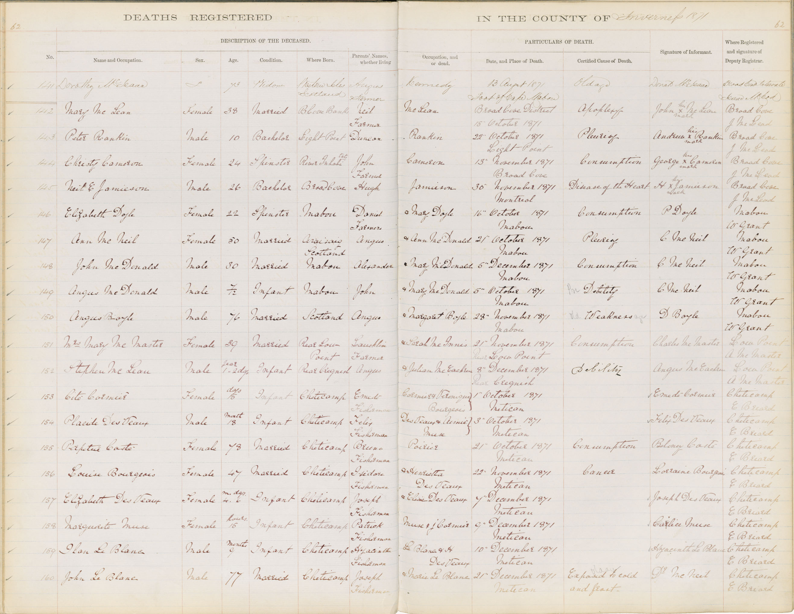 Death Registration: Year: 1871 book: 1810 page: 62 number: 141