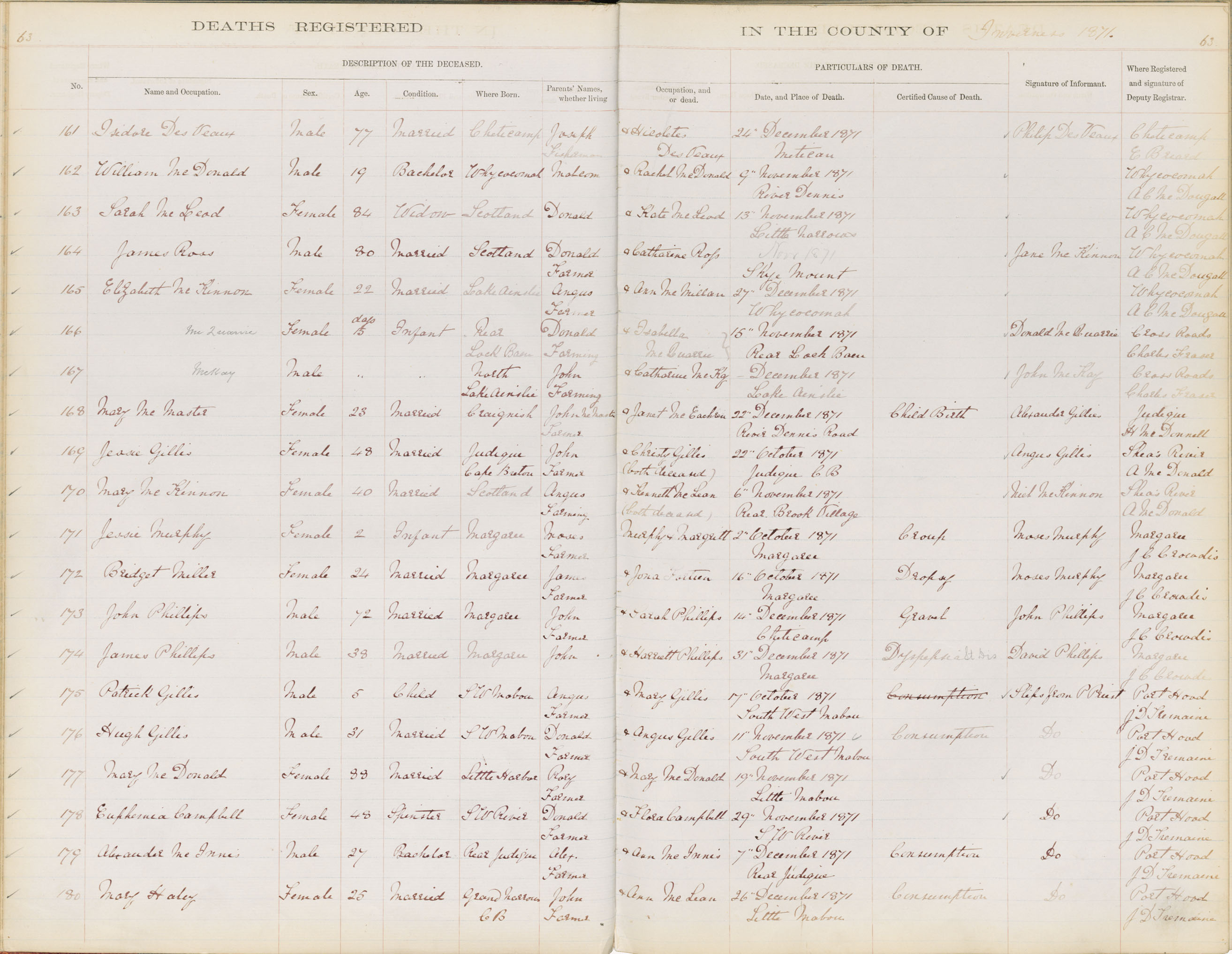 Death Registration: Year: 1871 book: 1810 page: 63 number: 161