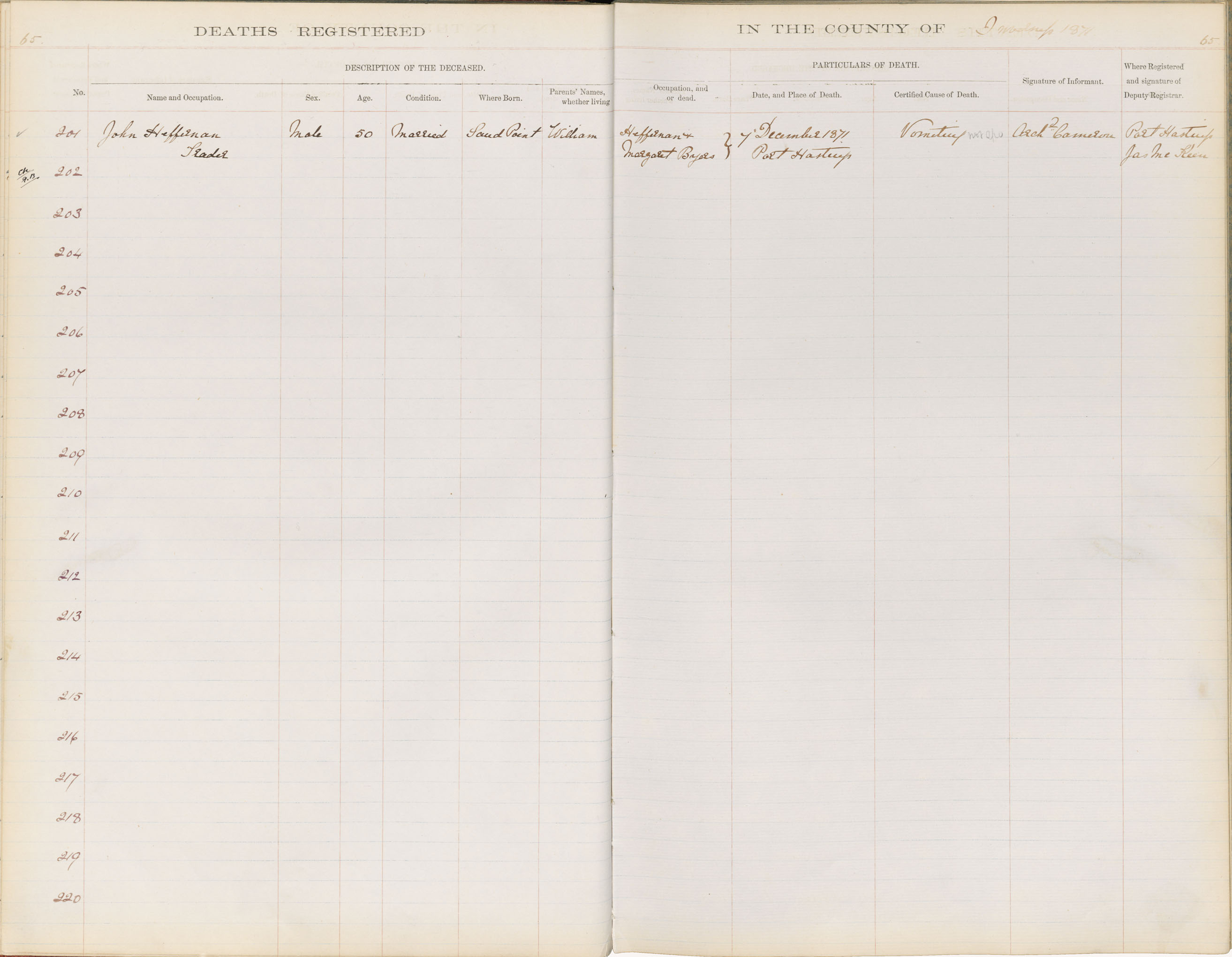 Death Registration: Year: 1871 book: 1810 page: 65 number: 201