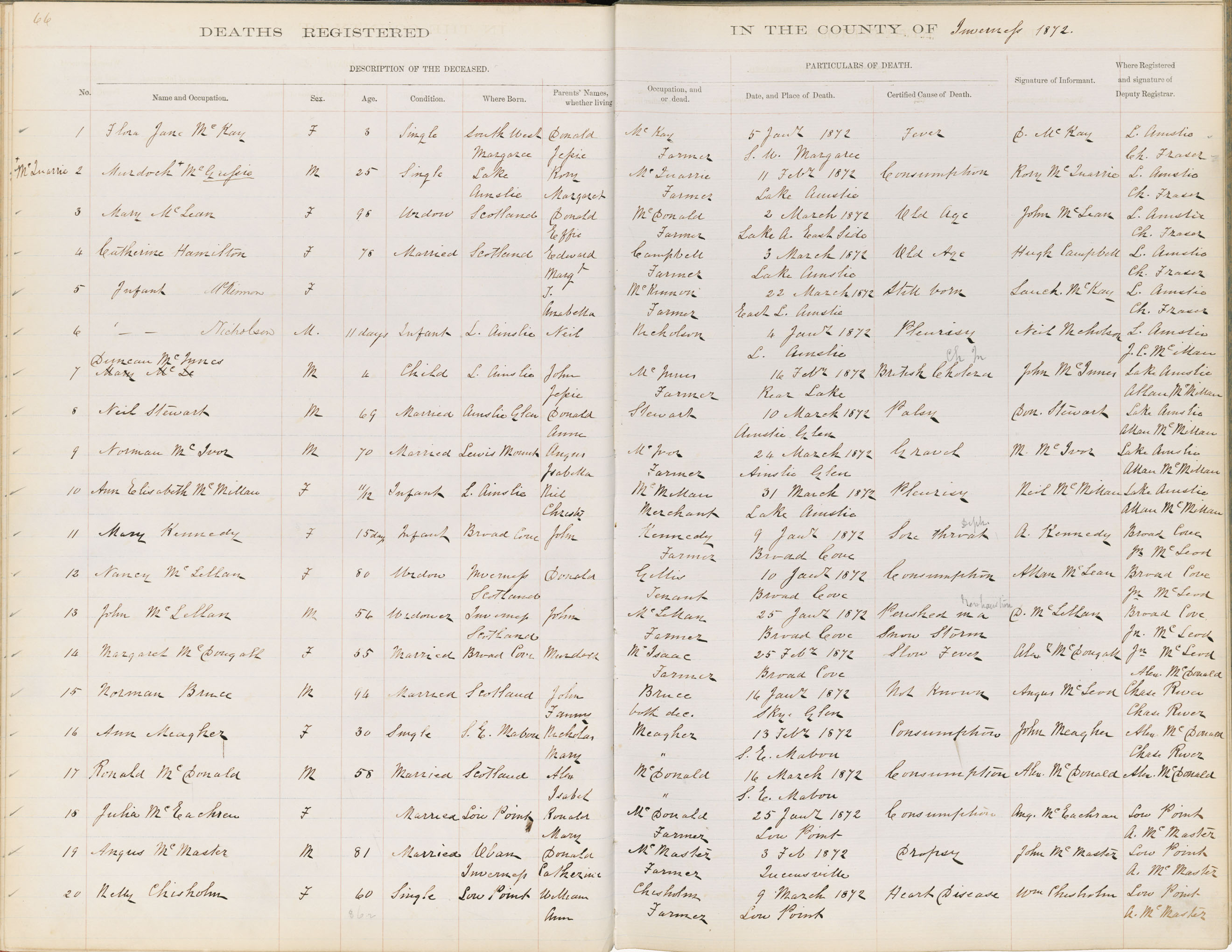Death Registration: Year: 1872 book: 1810 page: 66 number: 19